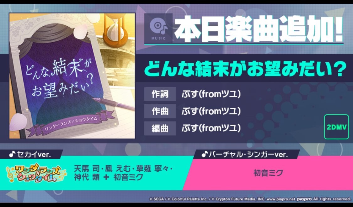 《世界計畫 繽紛舞台! feat.初音未來》原創曲〈どんな結末がお望みだい?〉