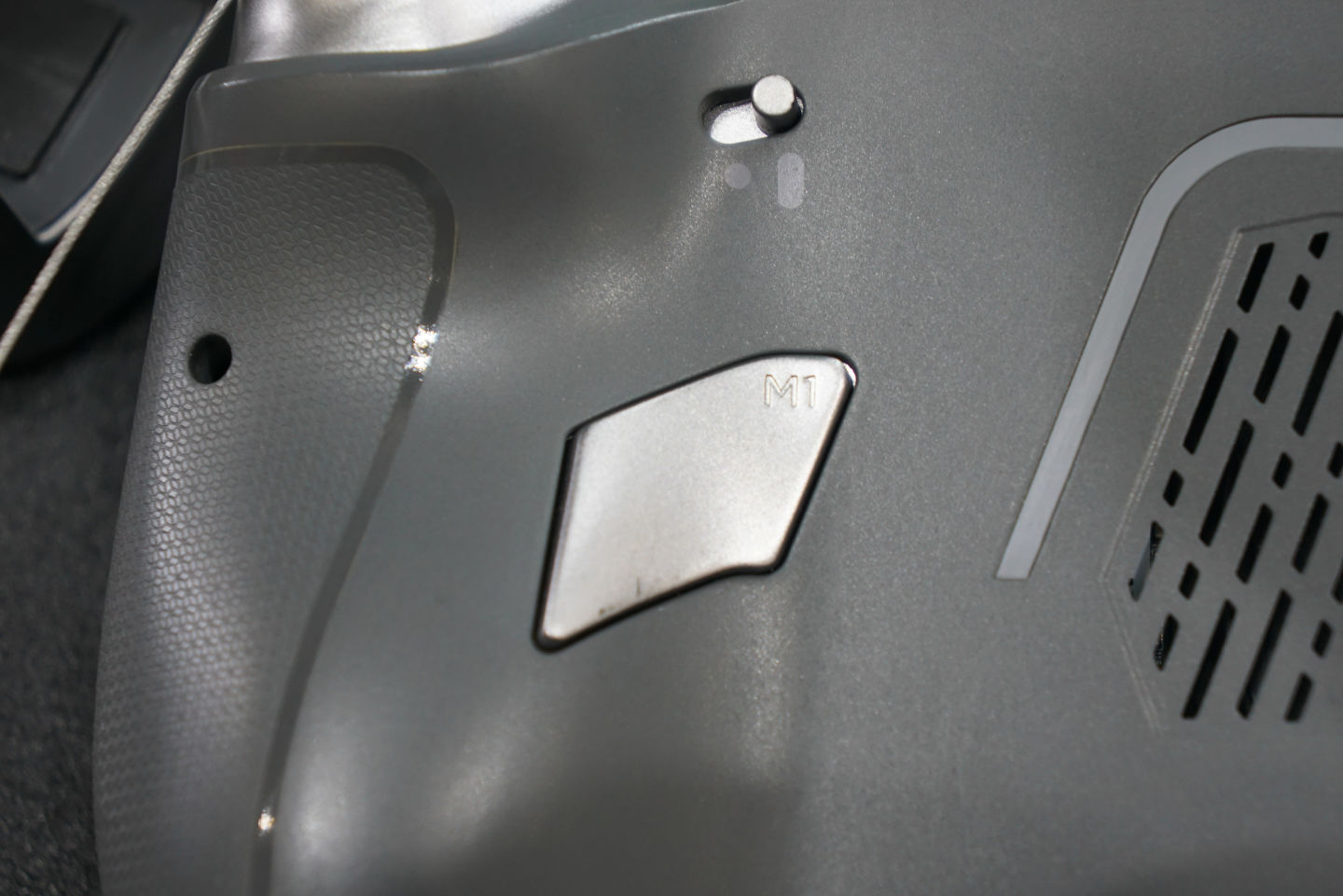 另外就是玩遊戲時需要專業的操控,所以了特殊的功能,除了有觸控版按鈕,類比霍爾搖桿旁是可調控的旋紐,可以作為音量大小或者是縮放地圖等功能,讓玩家可以自訂需求。扳機則可以根據動作遊戲、射擊遊戲切換兩種不同的觸發鍵程。