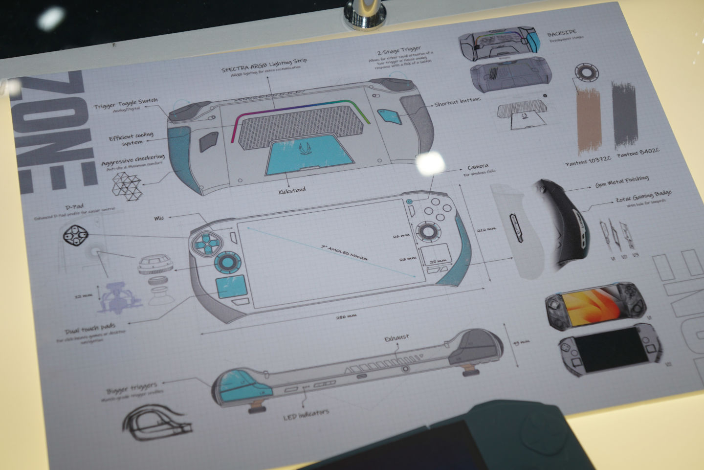 現場展出 ZOTAC 在開發「ZOTAC GAMING ZONE 」時的不同階段,並表示在設計 PC 掌機前,有針對目前WINDOWS 環境的掌機玩家需求歸納出兩個要點:第一,顯示螢幕要夠好;第二,操控觸感要專業,因此「ZOTAC GAMING ZONE 」基於這兩大重點做出區別性。