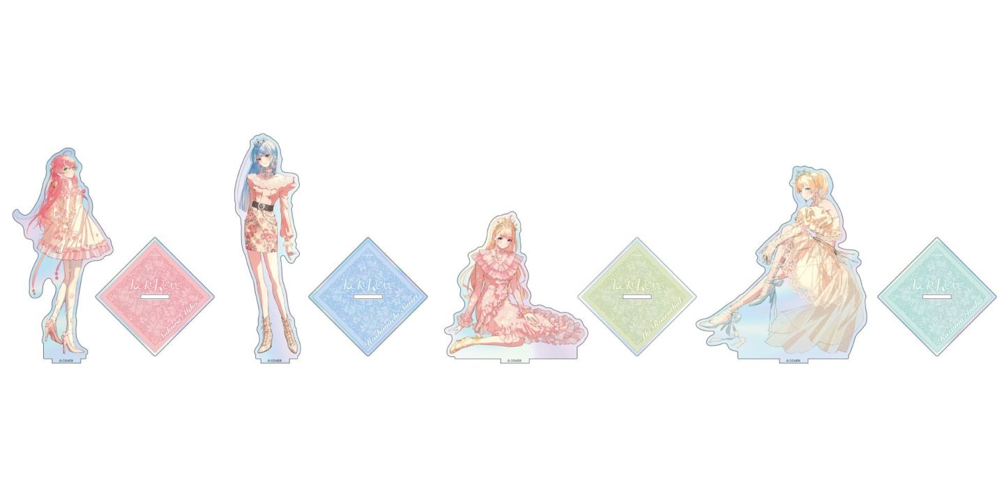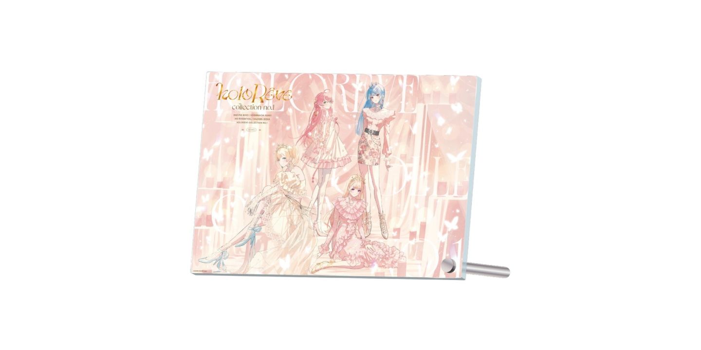 「holoRêve」旨在創造出夢幻般的創意商品,是一個能給喜歡可愛女生和酷女孩的 hololive 女性粉絲們帶來滿足和快樂的全新品牌;櫻巫女/星街彗星/亞綺.羅森塔爾/風真伊呂波四位 Vtuber 換上了嶄新的粉色洋裝造型,在插畫家「うごんば」的設計下表現出不同於平常的清純且成熟的模樣。商品陣容包含壓克力畫版/壓克力立牌/心型徽章/布馬口鐵圓鏡/項鍊/壓克力立牌套/托特包/小束口袋。