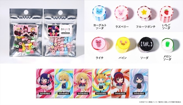 動畫《【我推的孩子】》與藝術糖果店「PAPABUBBLE」推出聯名糖果,於 6/27 起在日本全國店舖及官方線上商店限量販售。
