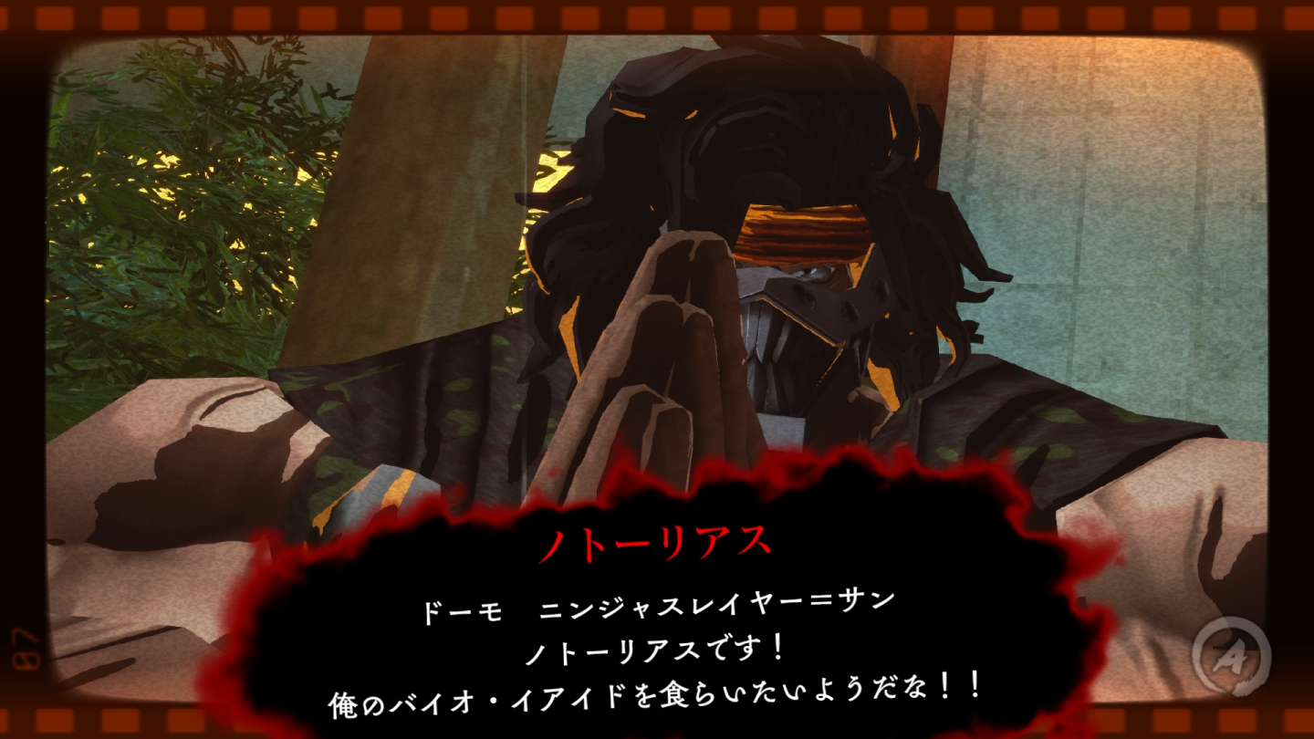 遊戲中,除了有豐富的動作演出外,還有只需一個按鈕就能在衝刺的同時進行攻擊,可享受與原作相同高速戰鬥樂趣的「忍者疾跑」,以及八名個性十足的王怪等待的各個關卡,讓玩家可以依照自己喜歡的順序來挑戰。而且《忍者殺手》中獨特的台詞風格以及語言魅力也會在遊戲中也得以保留,讓玩家體驗最原汁原味的《忍者殺手》戰鬥樂趣。