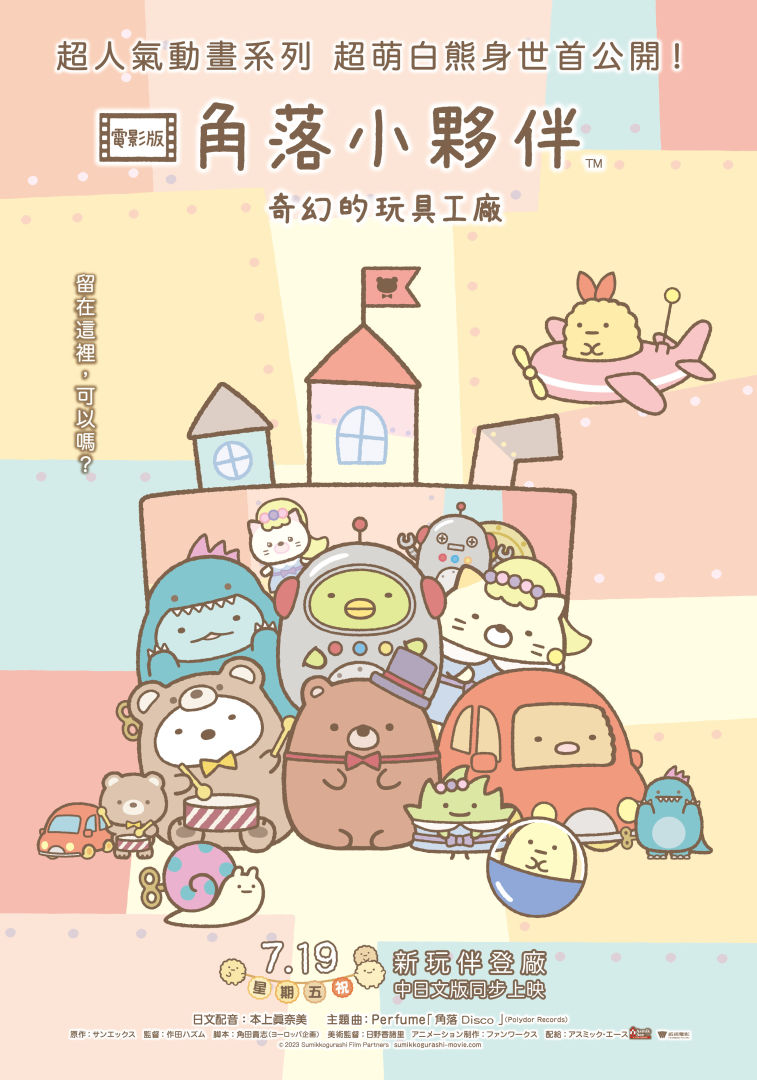 風靡亞洲的「角落小夥伴」電影版第三彈今年暑假再登大銀幕!由《宇宙奇妙生物小鐵君》導演作田ハズム、《角落小夥伴電影版:魔法繪本的新朋友》編劇角田貴志、攜手原班動畫團隊 Fanworks 打造全新冒險故事《角落小夥伴電影版:奇幻的玩具工廠》,即將在 7/19 暑假熱鬧登場!