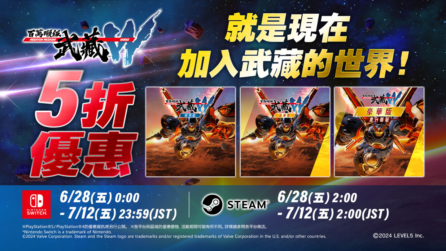 Level-5 好評發售中的《百萬噸級武藏W:WIRED》(Nintendo Switch/PS5/PS4/Steam),將於 6 月 28 日(五)開始實施金剛戰神參戰紀念優惠活動。同時 5 折優惠活動確定開跑。