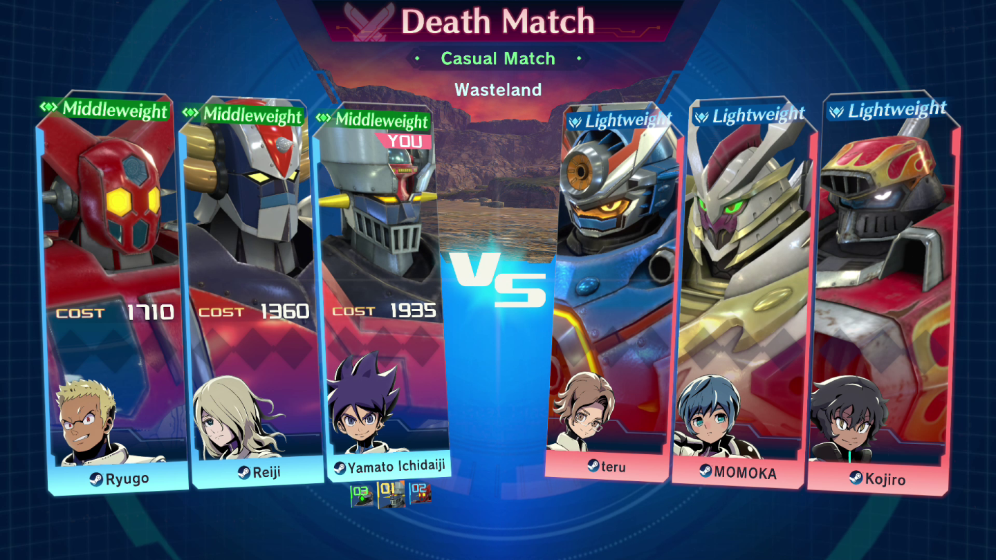 在 3vs3 對戰功能「競技場對戰」中,可以自訂「蓋特機器人」「無敵鐵金剛」的部件。全身都裝上合作機體參戰的話,就可使用「金剛飛拳」「蓋特光束」等合作必殺技。競技場對戰可跨平台遊玩,盡情享受與全球玩家的戰鬥吧。
