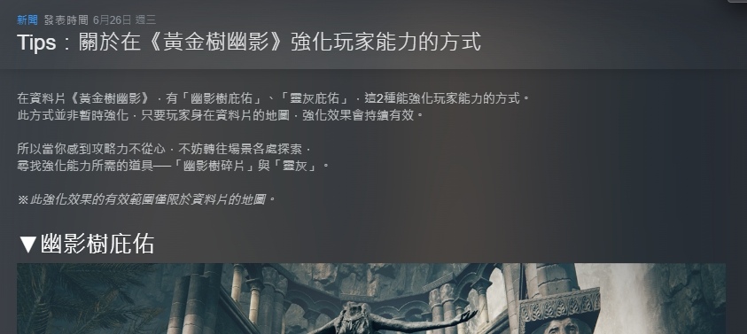 而官方在負評開始大量出現後,便在 X(Twitter)與官網特別推廣 DLC 新系統幽影樹及靈灰庇佑,如今該文也於 Steam 公告中推出。搭配本次小更新內容,顯然官方還是對難度做出了讓步,讓玩家自行決定:想打得輕鬆點,那就多多收集幽影樹碎片與靈灰進行強化吧。