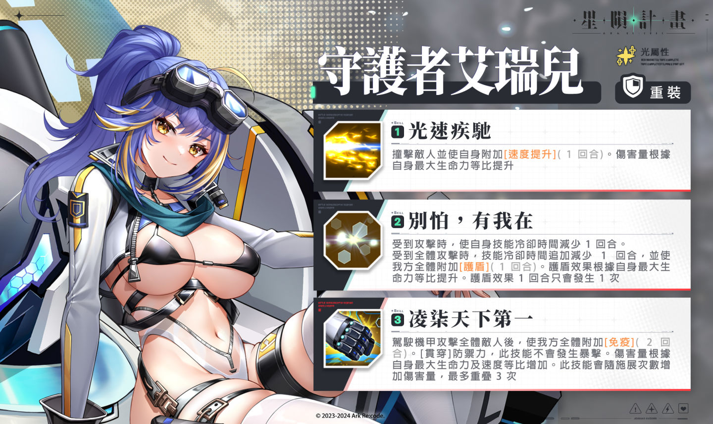 神秘招募團員「守護者艾瑞兒」招募機率正在提升中,守護者艾瑞兒 S1 可以提升自己的速度, S2 可以在被攻擊時減少自身冷卻外,1 回合 1 次提供我方全體護盾, S3 能在附加我方全體免疫狀態的同時造成貫穿效果的傷害,還會依照使用次數提高傷害,是個非常強力的團員!