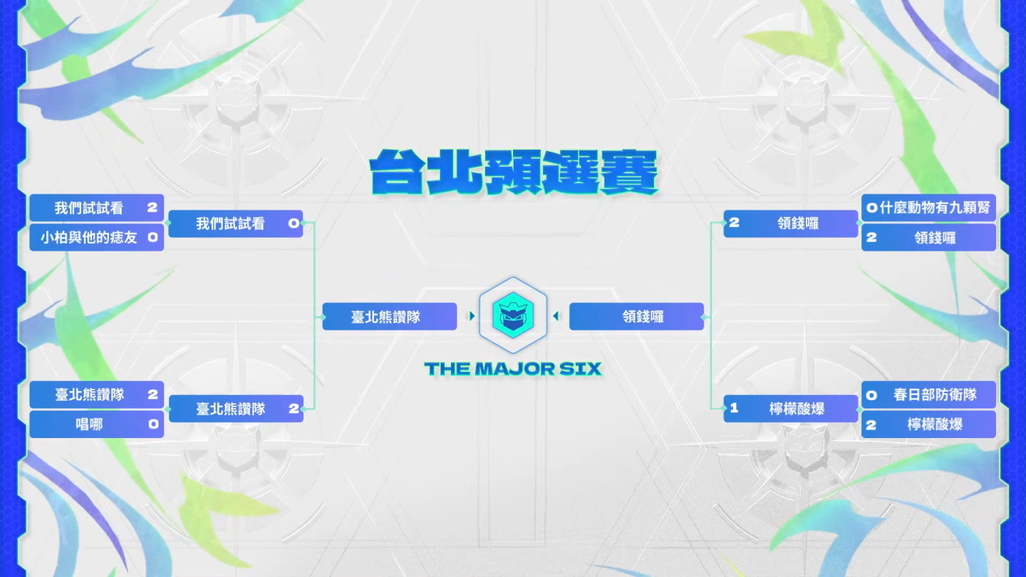 在四強賽獲勝的「臺北熊讚隊」、「領錢囉」兩支隊伍,將前往三創生活園區 12F「Syntrend Show」多元廳現場進行一場 BO5(五戰三勝)賽事,都冠軍隊伍將獲得三萬獎金及小組賽資格。