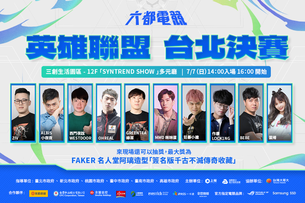 由上報及台灣福爾摩沙電子競技協會主辦、台灣大哥大及 Krafton 協辦,六都市政府一同指導之全台最大規模業餘電競賽事 2024「六都電競」,《英雄聯盟》北區決賽將於 7 月 7 日線下開打。