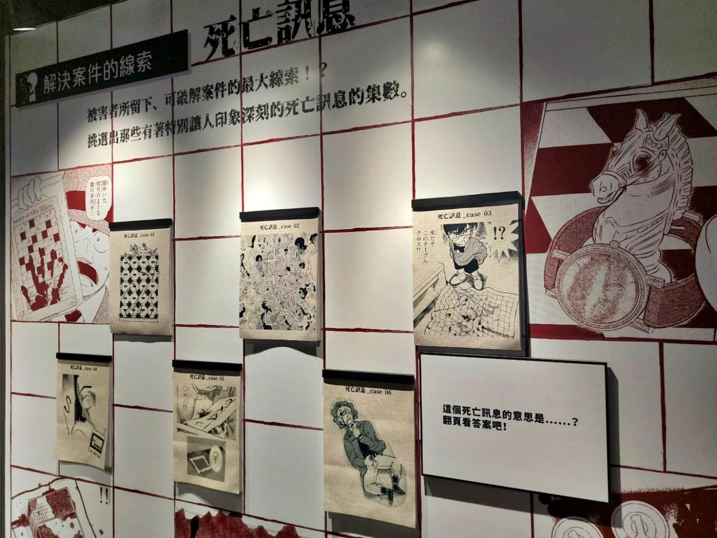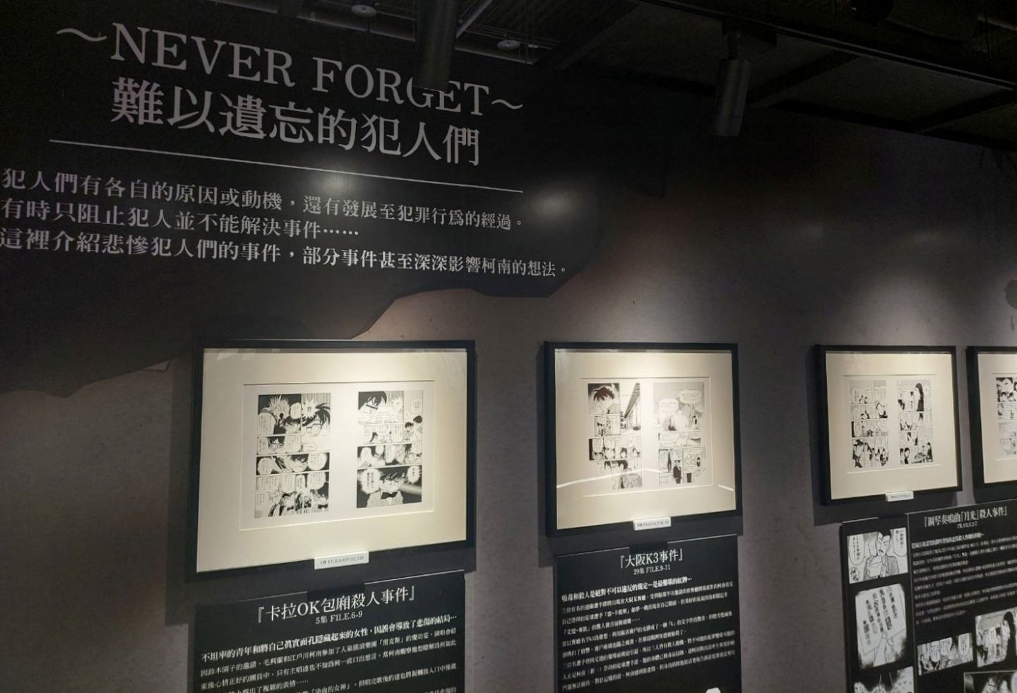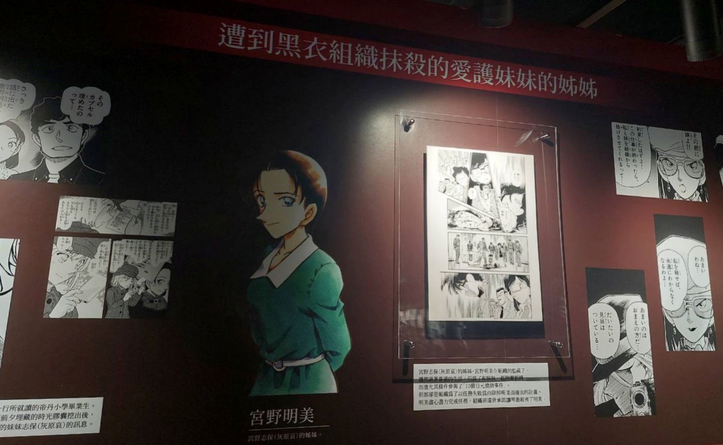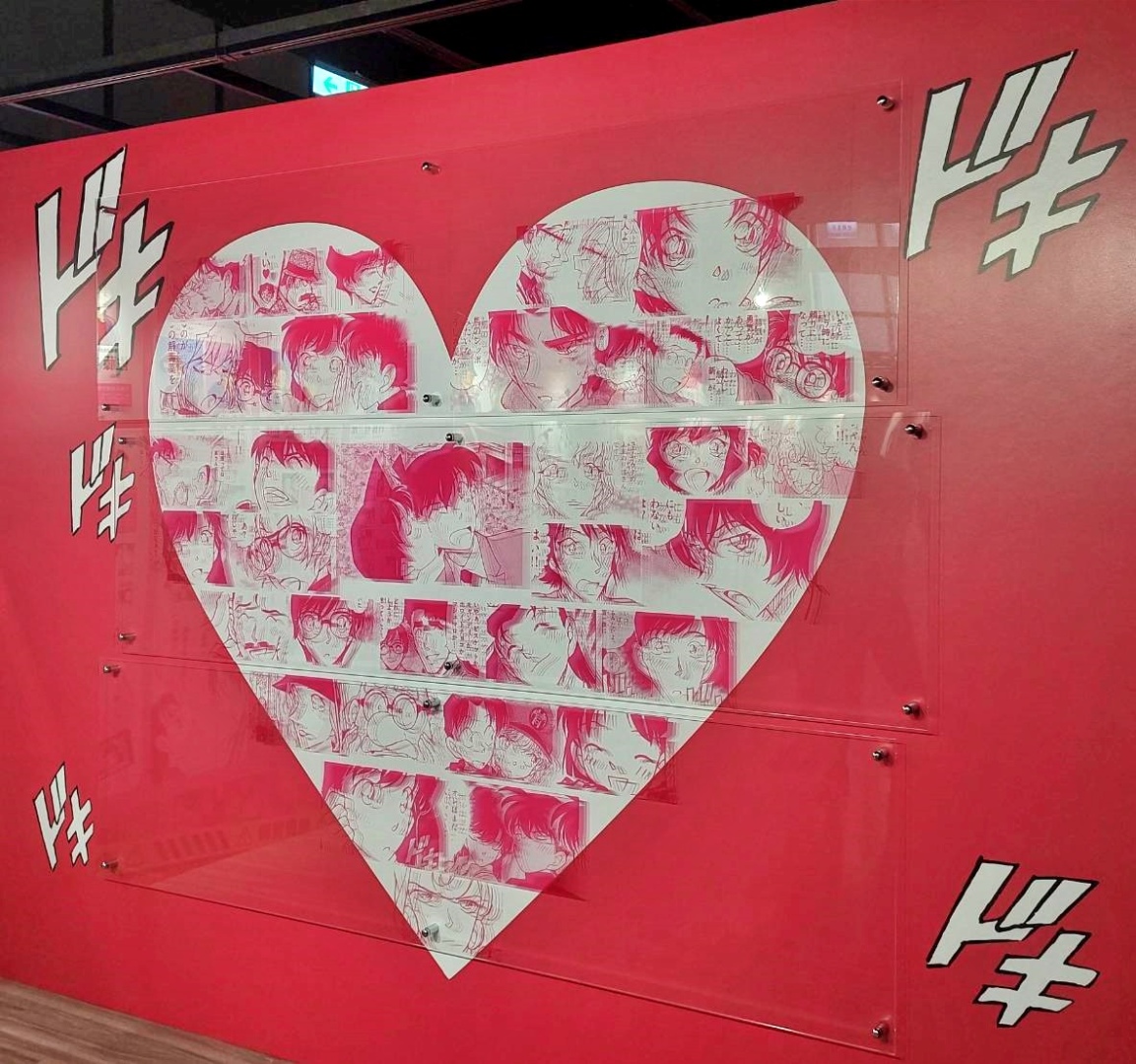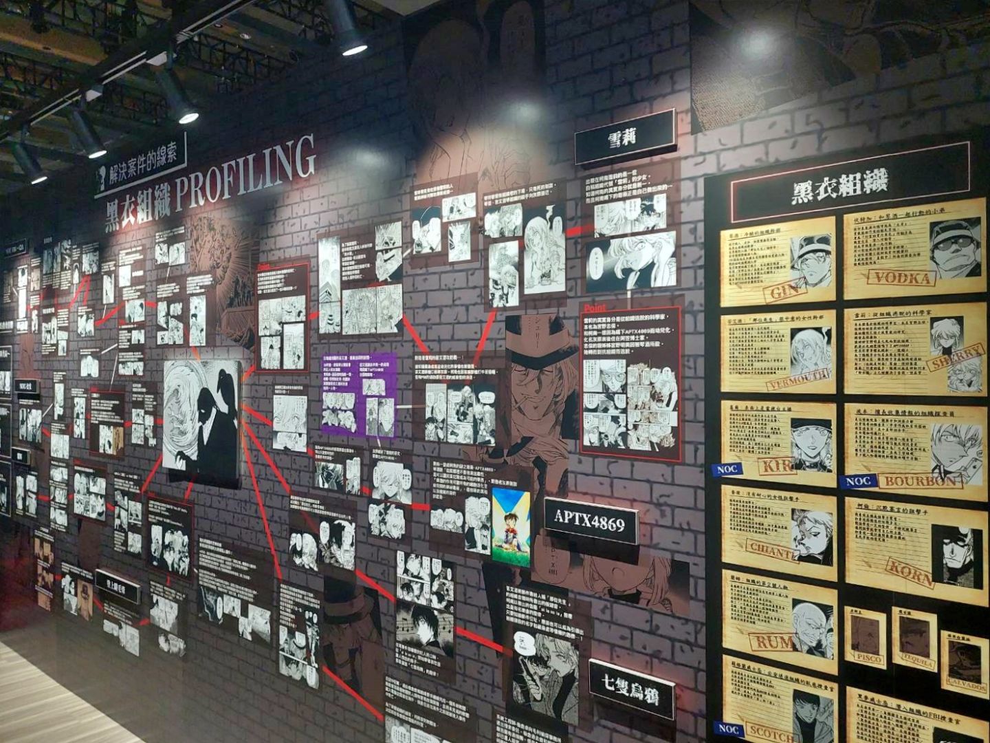 第二個展區「CONAN's Love」,顧名思義解析劇中主要配對的交往過程及兩人對彼此的心情,不過也把廣義上的「愛」像是崇拜、家人之間的愛也都包括進去,另有一整面的「心動牆」,可以看到漫畫中每個粉紅色的心動時刻;第三個展區「CONAN's Mystery」以作品中的解謎要素為焦點,同時還公開黑衣組織到目前為止的全部情報!實在是一個非常值得仔細研究的展區......至於青山老師對於暗號設計的分享也非常有趣,這方面建議大家好好觀賞!