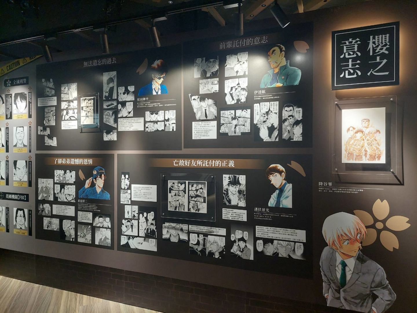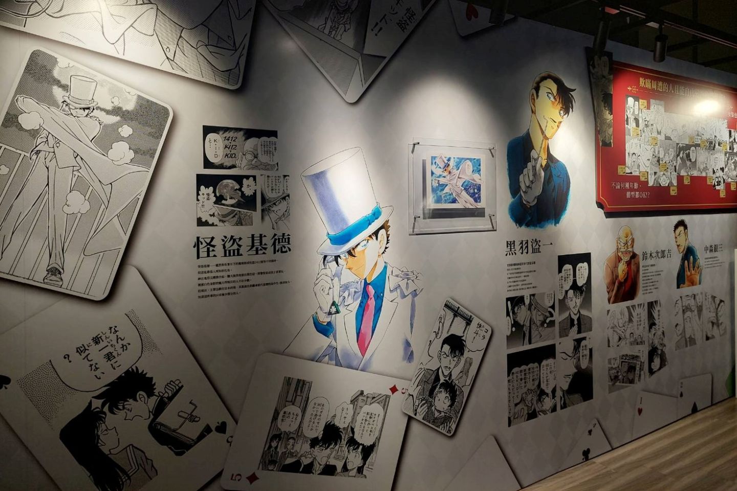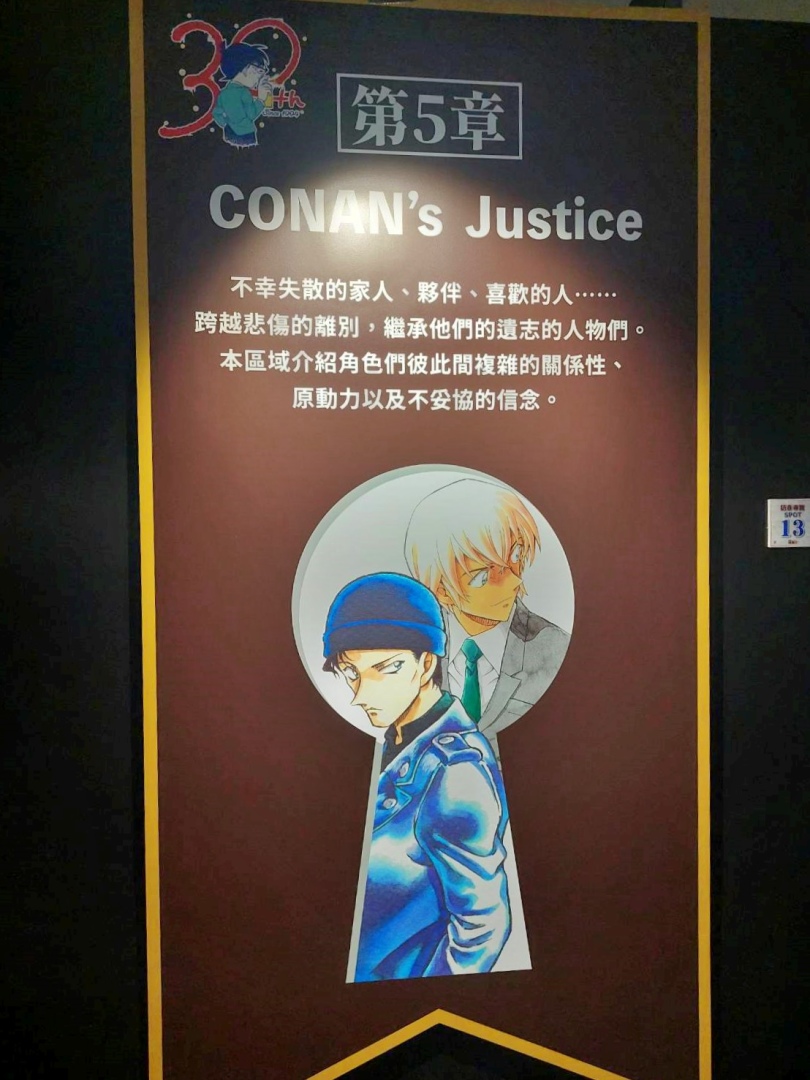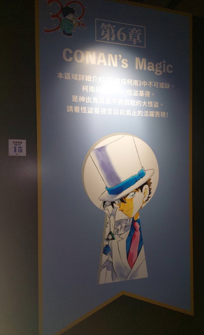 第五個展區「CONAN's Justice」介紹了劇中擁有複雜關係的角色和他周邊的人們,包括人氣角色降谷零、赤井秀一、灰原哀等,可在這裡回顧他們的主線故事。第六個展區「CONAN's Magic」讓來自《神偷怪盜》的怪盜基德在此活躍!專屬的展區介紹了黑羽快斗之所以成為怪盜基德的原因,還有在劇中華麗現身的時刻,超帥氣的立像前還設置了燈光,可在這裡好好瞻仰怪盜基德的帥氣臉龐!