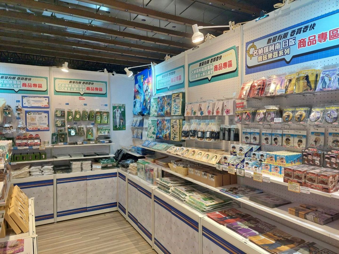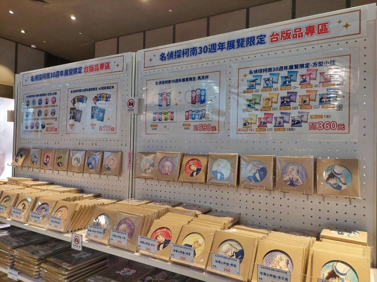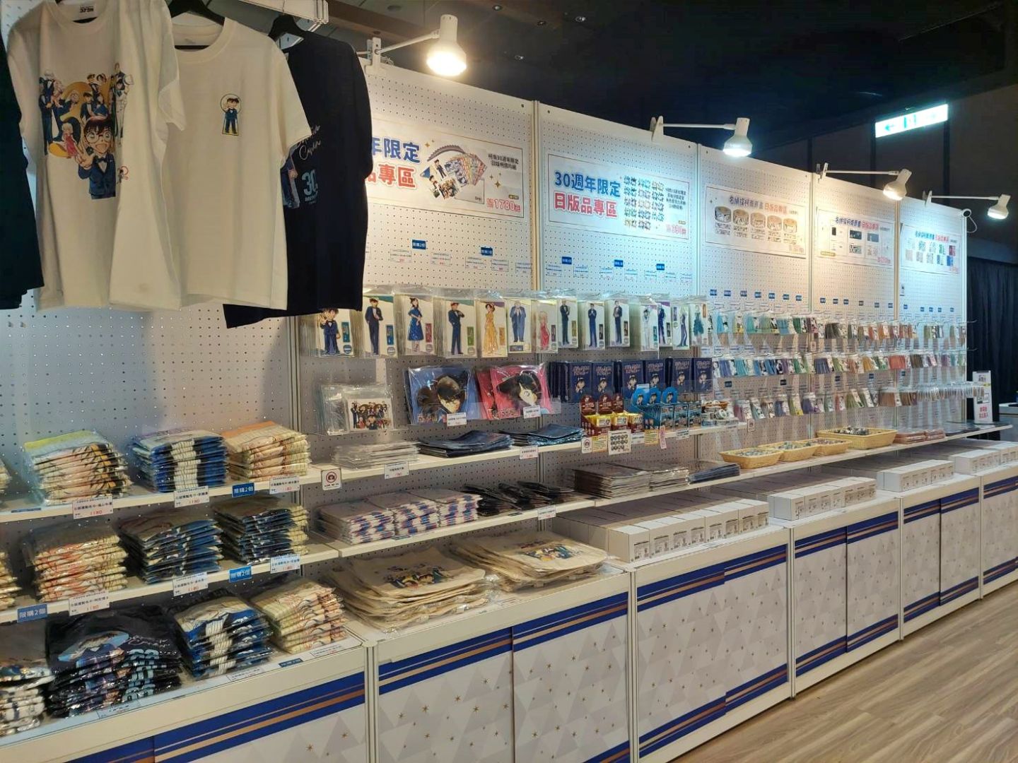 最後的周邊販售區,除了有「《名偵探柯南》連載30週年紀念展」專屬展覽周邊外,還有現正熱映中的電影版《名偵探柯南 100萬美元的五稜星》相關周邊,以及過去曾在其他活動中展售過的相關周邊。絕對不能錯過的就是小蘭與柯南的髮型髮箍了吧(笑)感覺數量很稀少!另外限定商品若現貨售完也提供預購,現場有許多商品都有限購額度,各位粉絲務必早點前來購買!