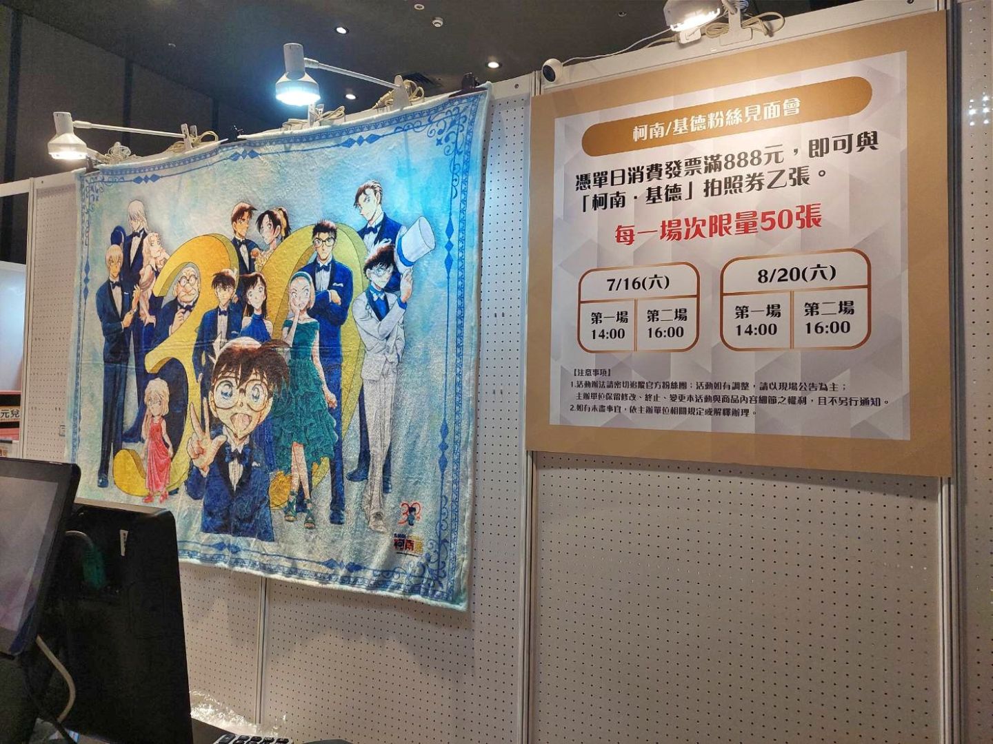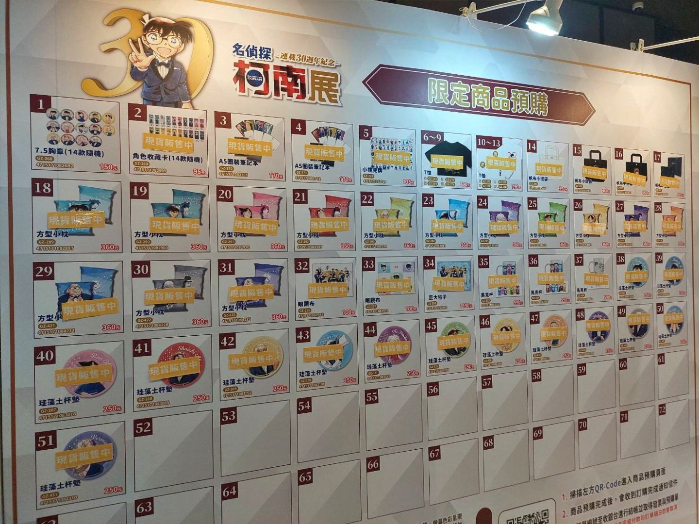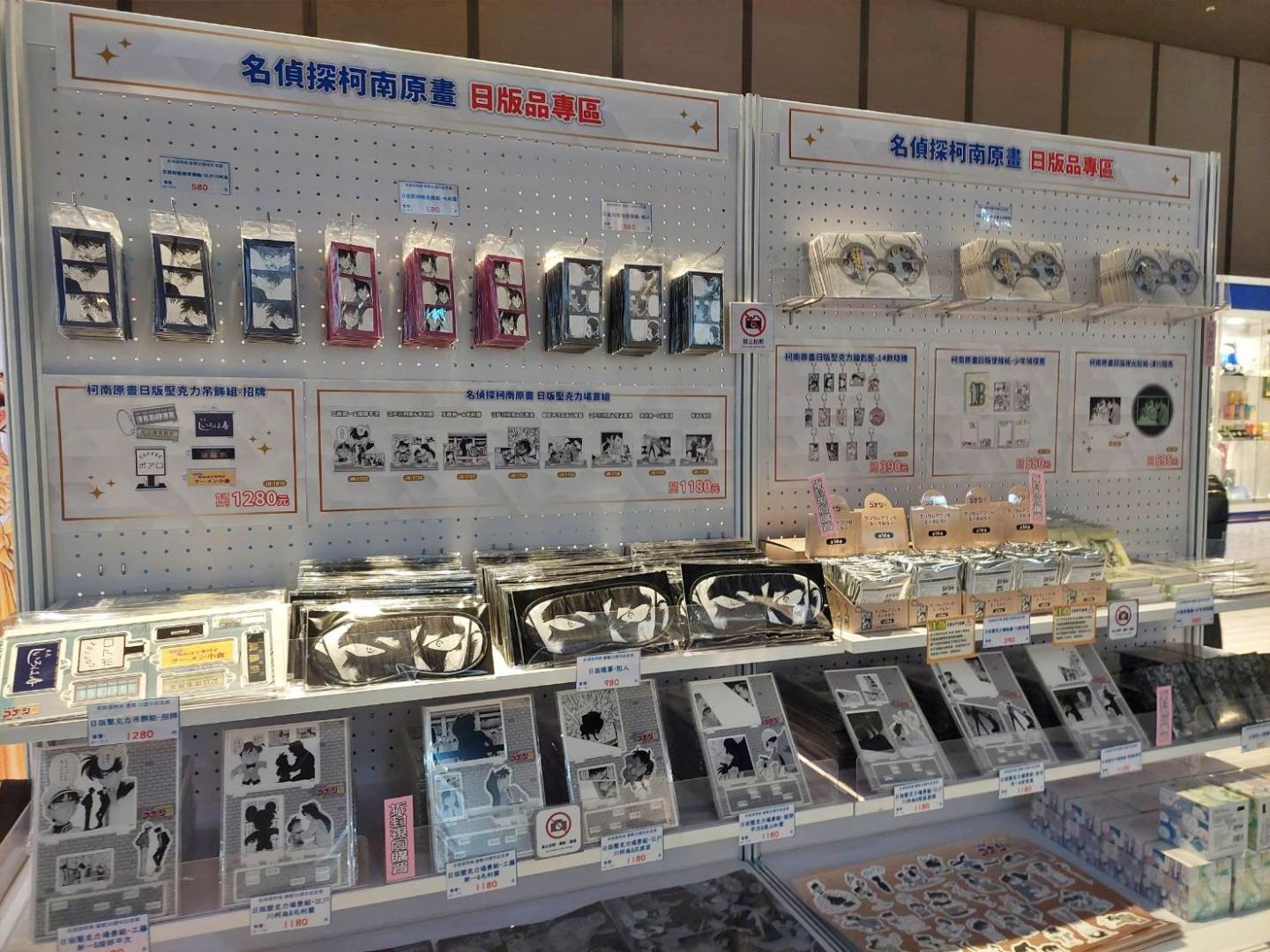 最後的周邊販售區,除了有「《名偵探柯南》連載30週年紀念展」專屬展覽周邊外,還有現正熱映中的電影版《名偵探柯南 100萬美元的五稜星》相關周邊,以及過去曾在其他活動中展售過的相關周邊。絕對不能錯過的就是小蘭與柯南的髮型髮箍了吧(笑)感覺數量很稀少!另外限定商品若現貨售完也提供預購,現場有許多商品都有限購額度,各位粉絲務必早點前來購買!