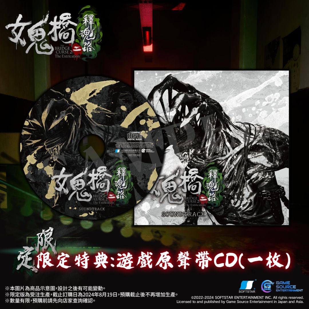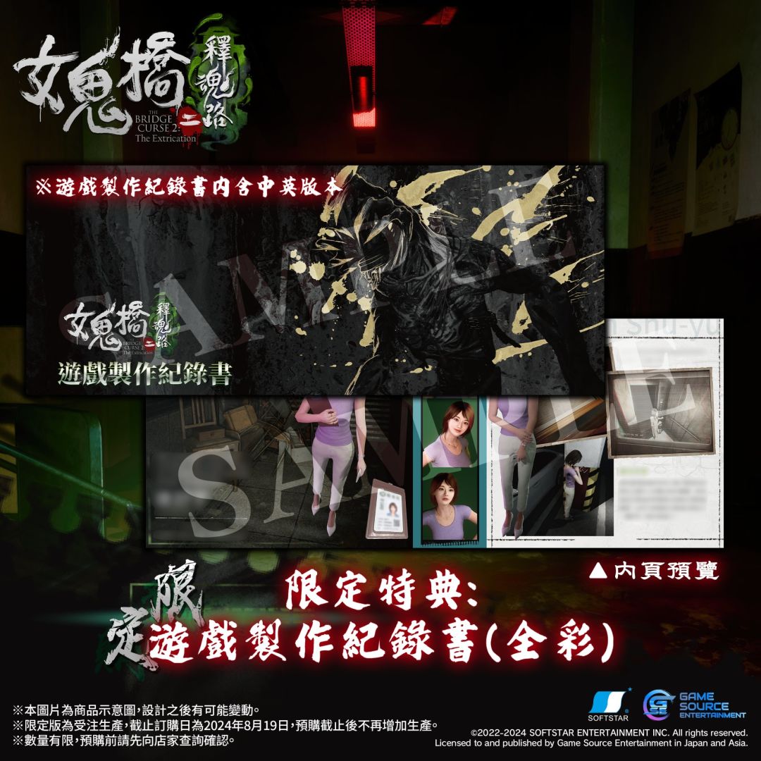 《女鬼橋二 釋魂路》Switch/PS4/PS5 亞洲實體版更特別推出限定版,特典內容包含《女鬼橋二 釋魂路》遊戲製作紀錄書及遊戲原聲帶CD,讓玩家沉浸式體驗「鬼樓」的恐怖!