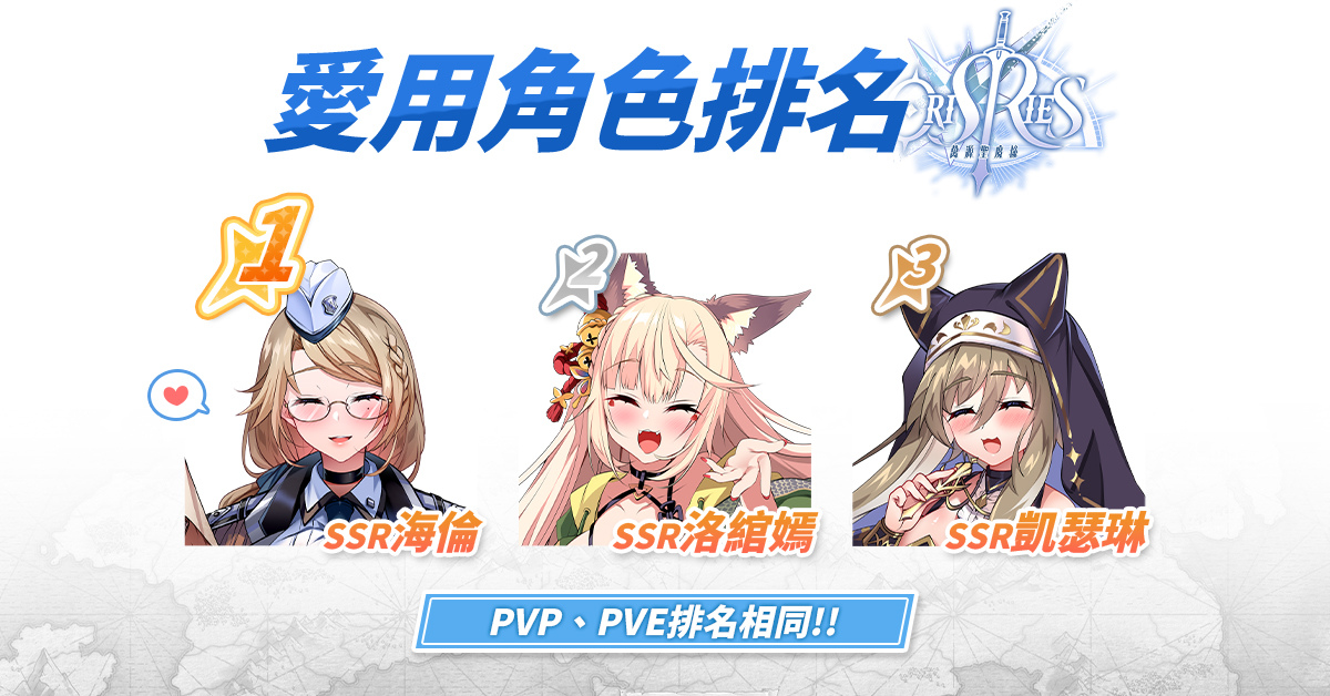 在菁英刪檔封測活動期間,統計指揮官們愛用的 PVP 與 PVE 角色,玩家最值得信賴的副官海倫,萌萌獸耳娘洛綰嫣,還有治癒滿分的獸人修女凱瑟琳包辦排行榜前三名!