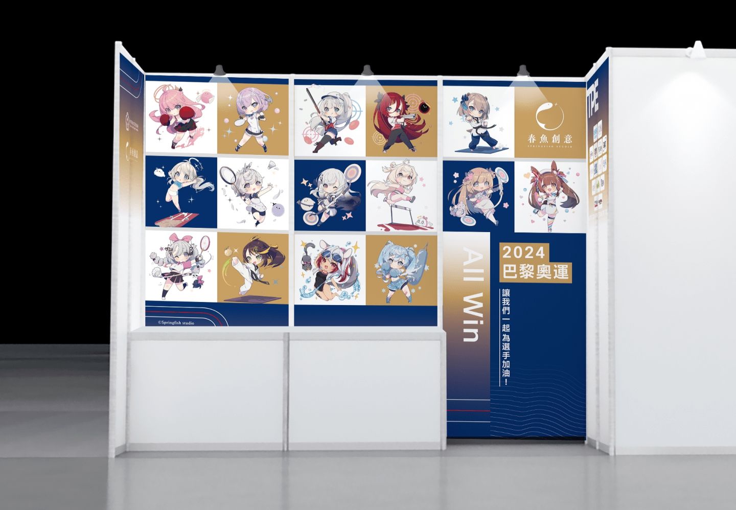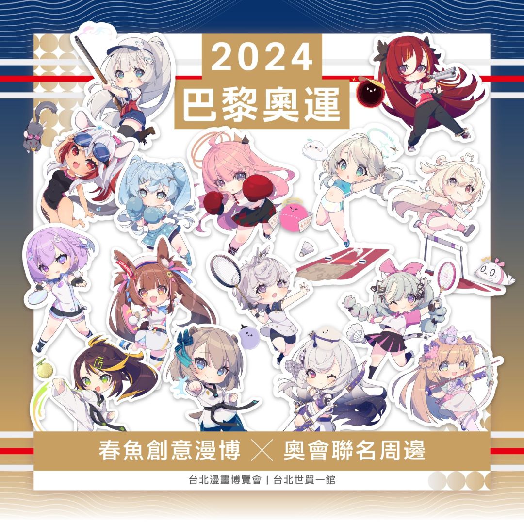此次春魚創意旗下 VTuber 擔任「中華奧林匹克委員會 年度宣傳虛擬大使」,陸續推出為 2024 巴黎奧運選手應援及宣傳介紹影片,為了讓更多人一起為中華隊選手應援,漫畫博覽會展出期間至春魚創意攤位可以免費領取聯名贈品,並且現場打卡參與活動就有機會獲得限量周邊。