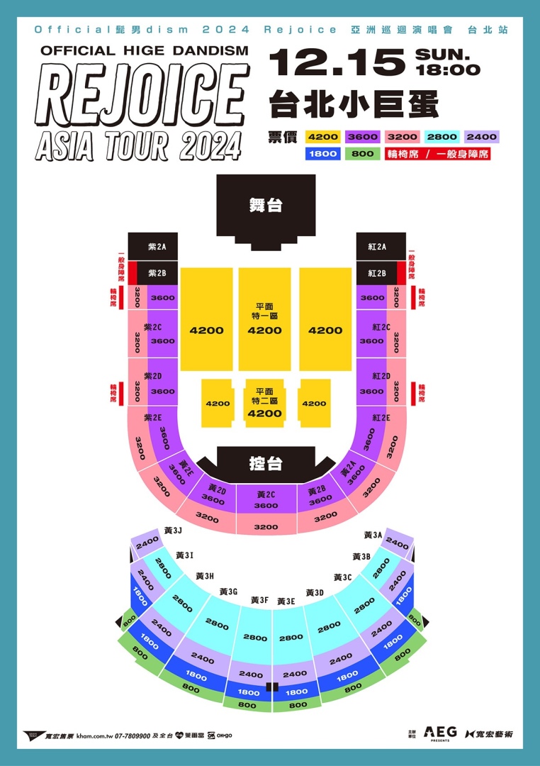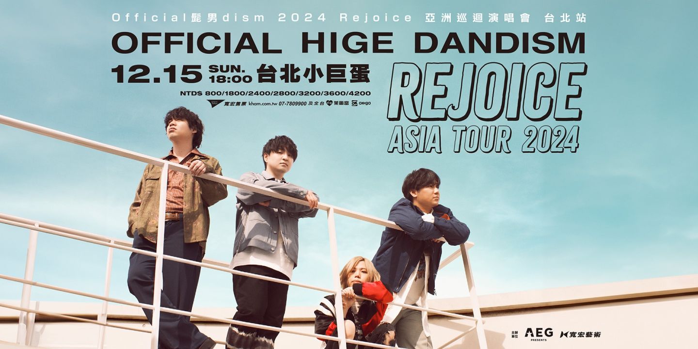 他們在日本的巨蛋巡演吸引近 30 萬名觀眾,亮眼成績不僅體現超高人氣,知名度更在全球快速竄升,穩坐新生代最受歡迎樂團地位,融合多元流派的音樂風格也持續擄獲不分年齡層的廣大聽眾。「Official 髭男 dism Rejoice 亞洲巡迴演唱會台北站」將自 8/19(一)中午 12 點正式售票,若您有 Official 髭男 dism 的 FC 會員資格(年間/月間),可至巡演官網優先預購,時間自 8/9(五) 中午 12 點起至 8/13(二) 日本時間 23:59 止。