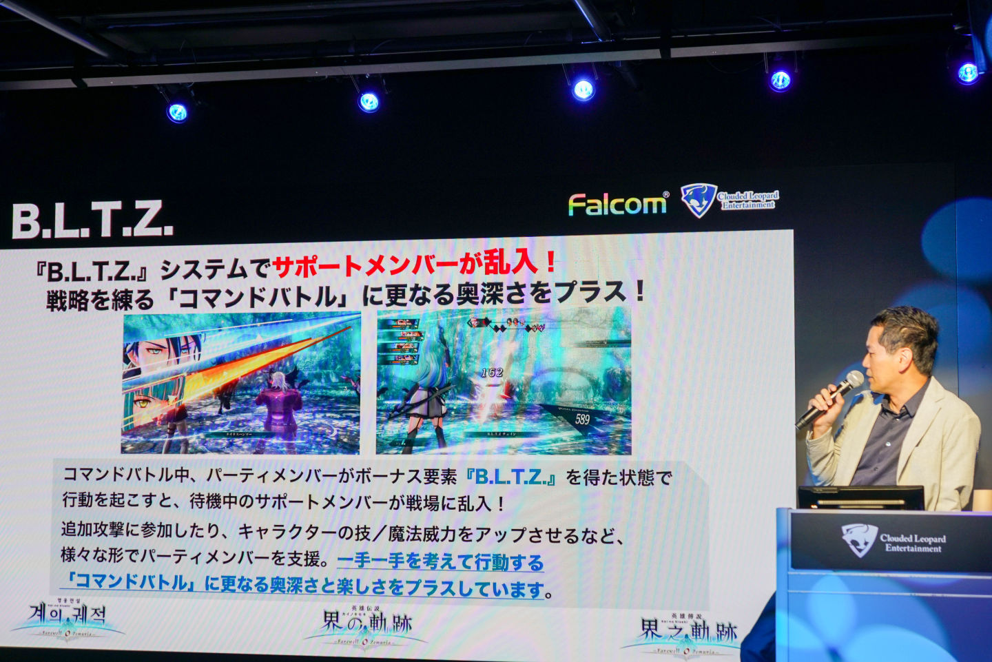 談到「閃之軌跡」的角色群,近藤承認:「登場角色可能有點太多了,但每個人都有其重要性。」他特別強調了本作的關鍵字「宇宙」:「黎恩與克洛在之前的故事中已經暗示了與宇宙的關連。我們會注意不要讓黎恩搶走現有主角的風頭,但他的戲份依然很重要。」