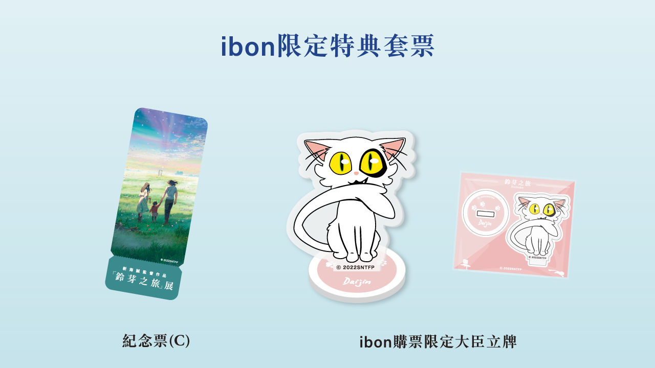 動畫大師新海誠監督作品「鈴芽之旅展」陸續於東京、大阪、石川、福岡等地巡迴展出後,終於正式來到台灣!8 月 15 日起至 9 月 17 日於台北新光三越南西店 9 樓與台灣粉絲見面!早鳥預售票於購票官網以及 ibon 購票系統同步限時熱賣中!在 Magic Hour 官網更推出 Premium 限定特典套票,展覽限定畫框等你來收藏;購買 ibon 限定特典套票還能將超可愛的「大臣」小立牌帶回家!早鳥優惠價只到 8 月 14 日,喜歡《鈴芽之旅》的朋友千萬不能錯過。