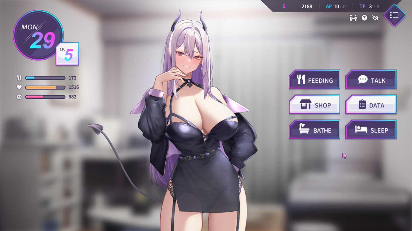 本作為悠閒日常的類養成經營系,上班賺錢,周末約會,在每日有限的行動值中與莉莉姆交流互動。玩家需要隨時注意莉莉姆的「飽食度」,在她飢餓前進行餵食並累積精液來提升「魅魔等級」,而交流中會提升的則是「親愛度」與「淫蕩度」,根據數值高低莉莉姆會有不同的反應,這些數值也會影響結局的走向。