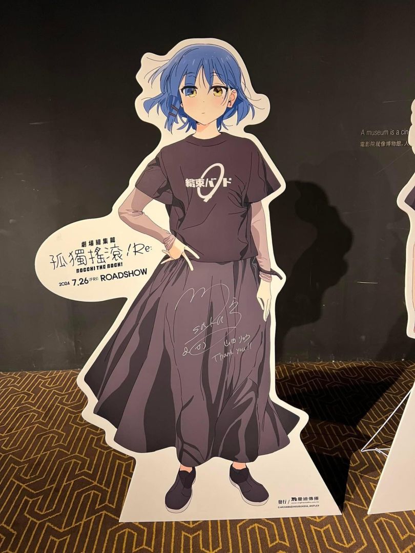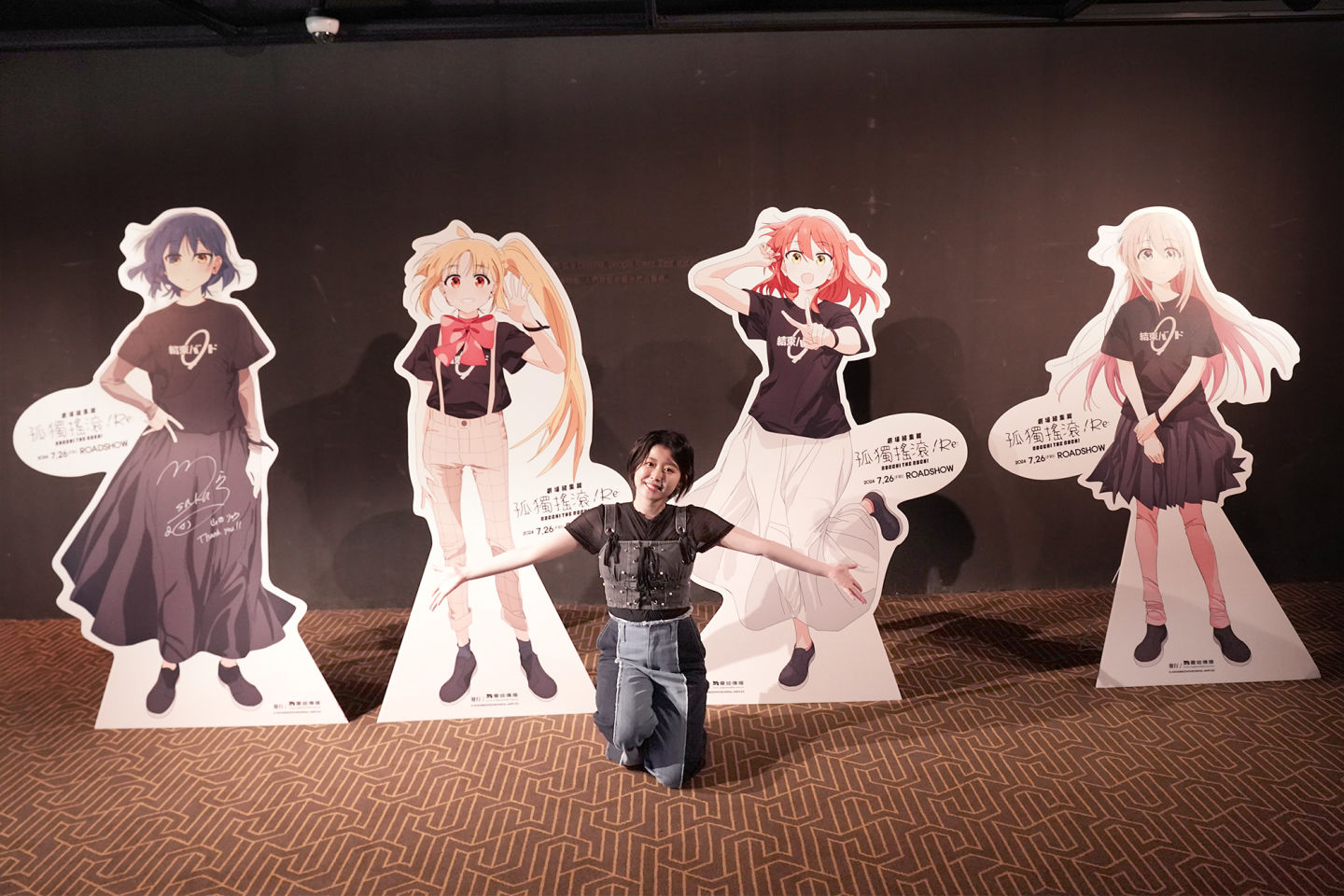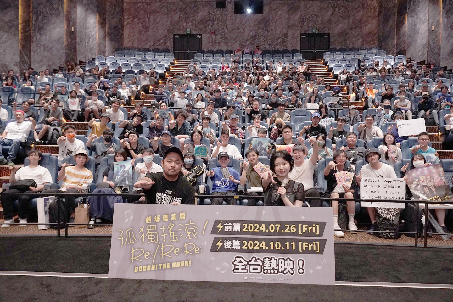 《劇場總集篇 孤獨搖滾 Re:》目前在台灣已經上映約一個月,這次特映會雖然並不是在上映初期就舉辦,但現場依舊吸引了許多鐵粉前來共襄盛舉,不少粉絲穿著相關的T恤、或是 COS 成劇中角色、帶著團結樂團成員們的娃娃及相關應援物前來,讓活動會場十分熱鬧。主辦方也將團結樂團四位角色的立牌移到現場,供粉絲拍照留念。後篇《劇場總集篇 孤獨搖滾 Re:Re:》預計在 10/11(五)在台上映。