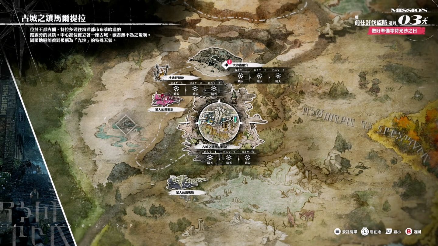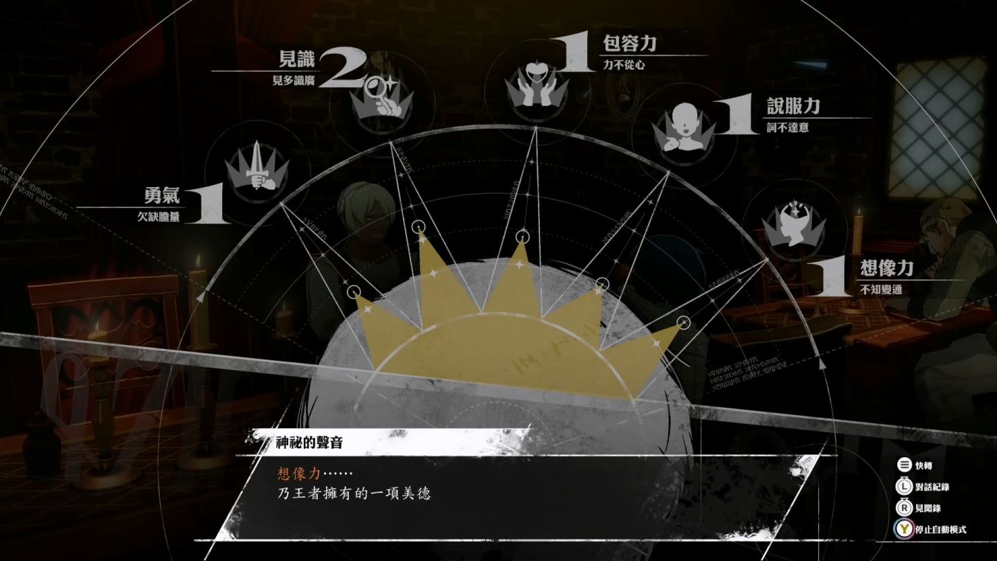 各個任務和委託中有些是有達成期限的,玩家可以在有限的時間內自由決定「何時」、「做什麼」和「去哪裡」。。宛如真的在奇幻世界中旅行一般的時間體驗,是這次試玩呈現的其中一項特色。根據「選舉魔法」判定王的資質,就有不同屬性的提升事件可以進行。
