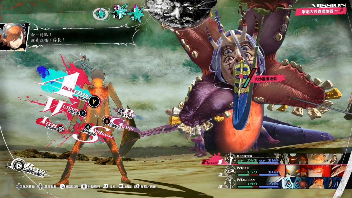 戰鬥上依然是以找出敵人弱點的基本方式進行,找出弱點就能讓我方角色多一個回合輸出,但也會加入其他需要破解的機制挑戰,這次更有許多異常狀態的展現,甚至連玩家打錯了分身都可能陷入異常,因此考驗玩家的觀察力,某些敵方能夠主動增加回合次數的方式相當強勢,就看日後主角方能否也能使用此招。