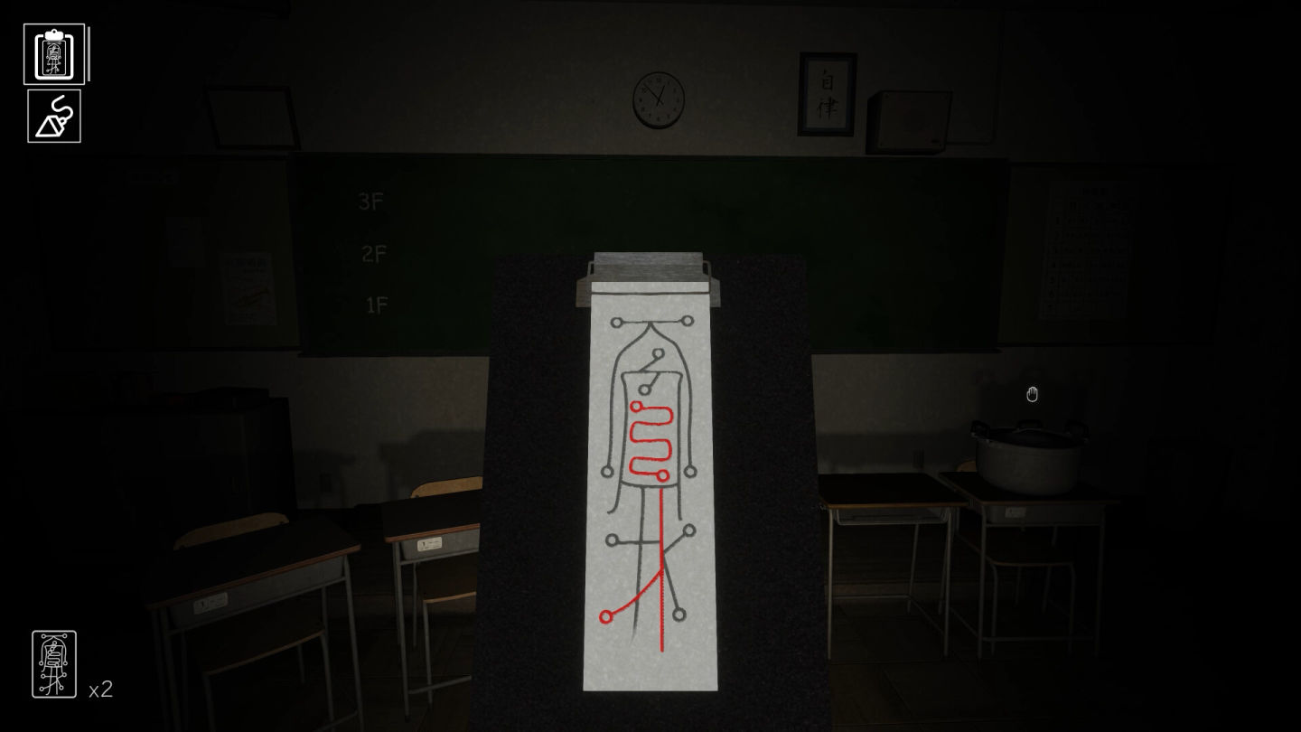 玩家需要參考描述各種超自然現象應對方法的手冊,靈活地採取適合每個現象的解決方案。順帶一提,在 Steam 商店頁面上公開的 GIF 中,還可以看到手冊的部分內容,因為資訊量龐大,因此玩家需注意不要搞錯解決方法;此外,有時候應對超自然現象時需要符咒,玩家可將其貼在目標物上並帶到指定地點來處理。有趣的是,校內發生的現象中還包括能讓業務「更有意義」的情況,若作為額外業務完成,將有助於當天的加班。