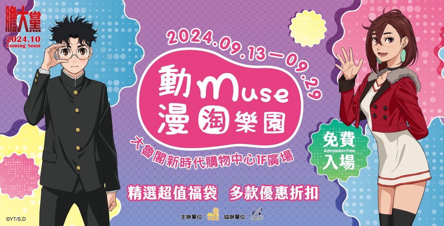 2024 年全台首場 MUSE 動漫淘樂園,將在 9/13~9/29 在台中大魯閣新時代購物中心一樓廣場,跟所有中台灣的粉絲朋友們見面啦!這次帶來熱門作品《鬼滅之刃 柱訓練篇》、《葬送的芙莉蓮》、《關於我轉生變成史萊姆這檔事》,以及十月超強新番《膽大黨》的合影區,還有淘樂園精選福袋、滿額贈活動跟各種優惠折扣,活動首三日更有超殺的 42 折福袋與限定滿額贈,錯過一定會捶心肝!