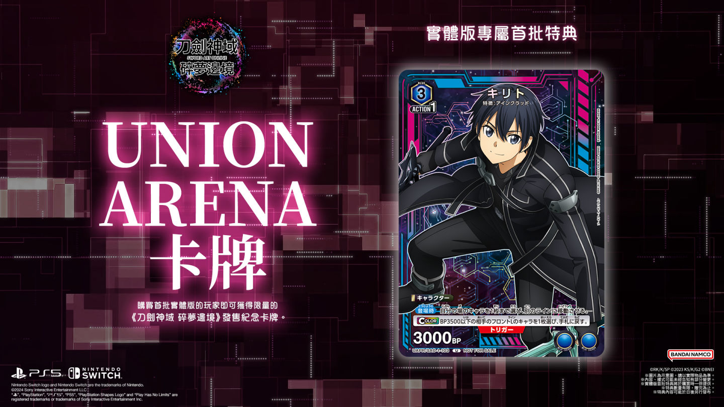 首批購買實體版的玩家即可獲得限量的《刀劍神域 碎夢邊境》UNION ARENA 卡牌。(僅日文)