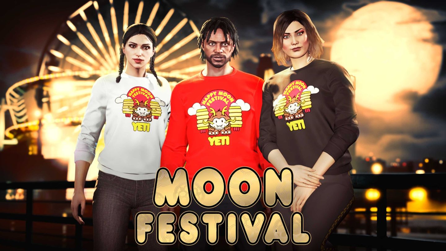 為歡慶中秋節,即日起至 9 月 18 日止,任何時間遊玩《GTA 線上模式》即可獲得三件黑色、白色和紅色配色的秋風毛衣,由傳說街頭服飾品牌「雪怪」推出,特別紀念這段感恩團聚的時節。
