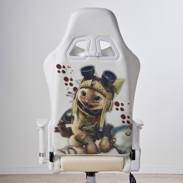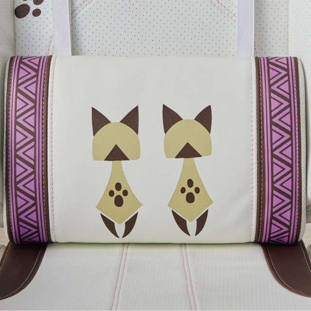 本次聯名商品包含電競椅(艾路款/雷狼龍款)、雷狼龍電競桌,以及四款方形抱枕和滑鼠墊。其中艾路款電競椅採用亮眼的白色做基礎,上面印有可愛的貓腳印和艾路造型的圖案,背面也能看到全副武裝的艾路,坐在上面就有種跟艾路一起狩獵的感覺。