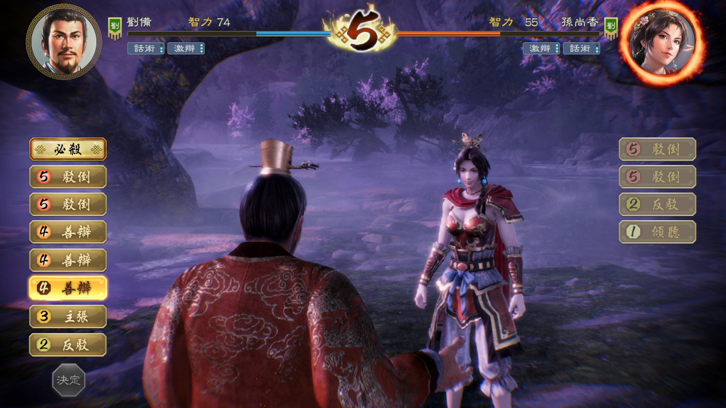 本作中除了「單挑」之外,新增了原作《三國志Ⅷ with 威力加強版》中沒有的「舌戰」系統。本作中規則將全面更新,以雙方的手牌數量一決勝負,戰略性更加提升,「單挑」及「舌戰」分別可以在戰鬥或是評定中扭轉局勢。武將們豐富的語音讓戰鬥更加令人熱血沸騰,遇到勢均力敵的對手時,還可以享受到每一步都可能決定勝負的緊張感。