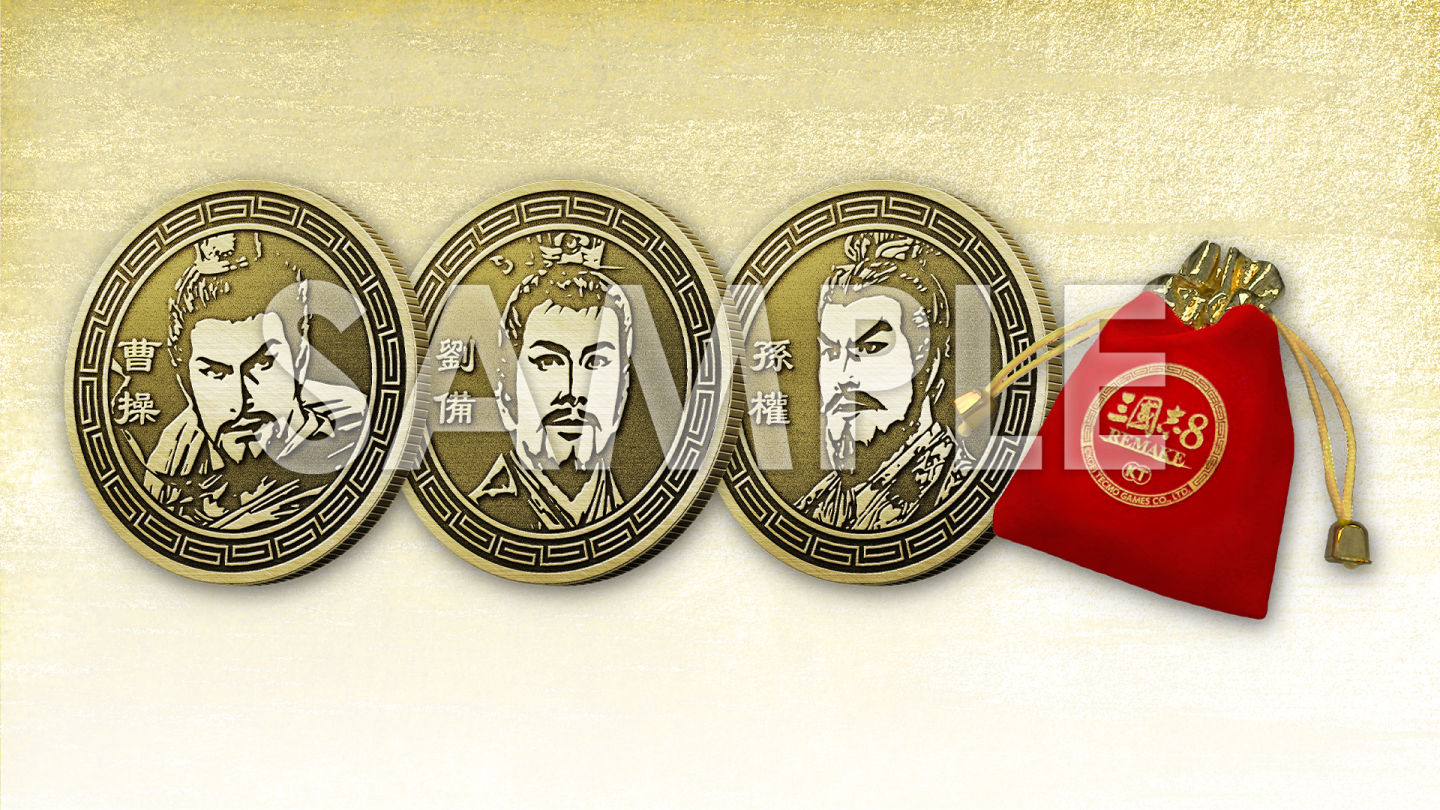 附帶一提,目前《三國志8 REMAKE》預定自 2024 年 10 月 24 日在 PS5/PS4/Nintendo Switch/Steam 等平台推出,遊戲支援繁體中文等語系。並將推出劇本「唯武獨尊」做為早期購入特典。至於下載版預購特典,則是劇本「反曹操聯盟成立!」。同時,也會推出「三國開運錦囊紀念幣」(紀念幣共魏、蜀、吳三款,會隨機贈送一款)作為亞洲實體版限定特典。