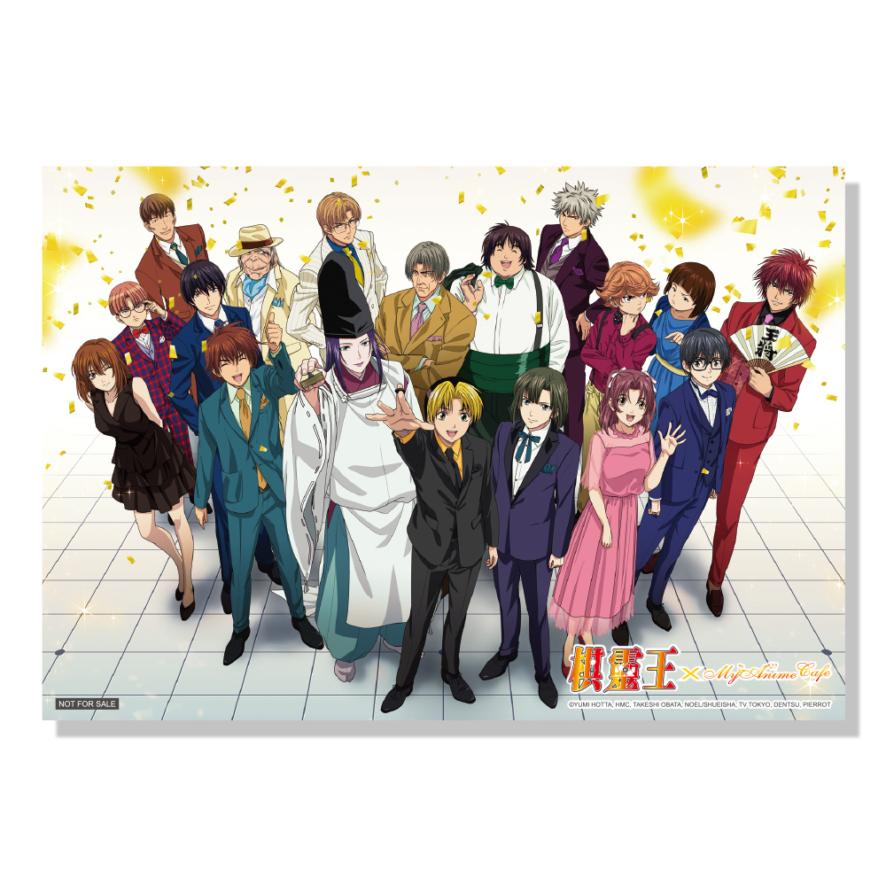為感謝粉絲們一直以來對《棋靈王》的支持與愛護,活動期間來店內用均可獲得特製感謝卡一張;同時更推出三階段滿額禮活動,當日來店單筆消費滿 800 元,即可獲得該期間對應 A3 海報 1 張,極具紀念意義的海報推薦每位粉絲務必珍藏,數量有限送完為止。《棋靈王》主題 Café相關資訊請關注 MyAnime Café 粉絲專頁公告,用餐前請先上網訂位哦!