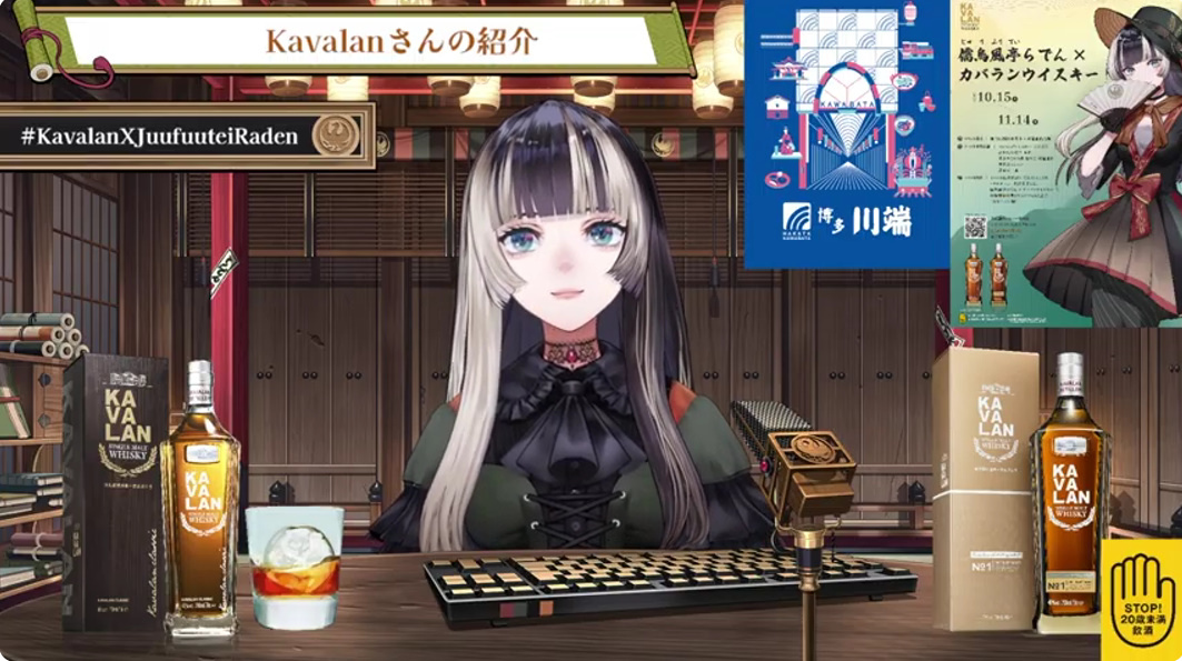 直播後半來到線下合作活動介紹部分,本次合作將會在福岡縣川端通商店街展開,這個地方對螺鈿來說也是充滿回憶的地方,因為她曾在附近打工所以很常去;活動期間到指定合作店家點噶瑪蘭威士忌聯名菜色的話,就能得到限量合作特典,喜歡儒烏風亭螺鈿的粉絲和愛酒人士不要錯過這難得的機會喔!