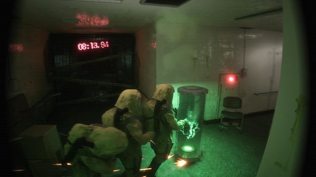 搬運實驗體最多可 4 個人連動操作。一個人難以搬動的實驗體,透過「連結搬運」就能比後方追趕的敵人更快搬送。但若默契不佳就會因此喪命。