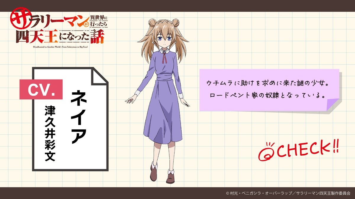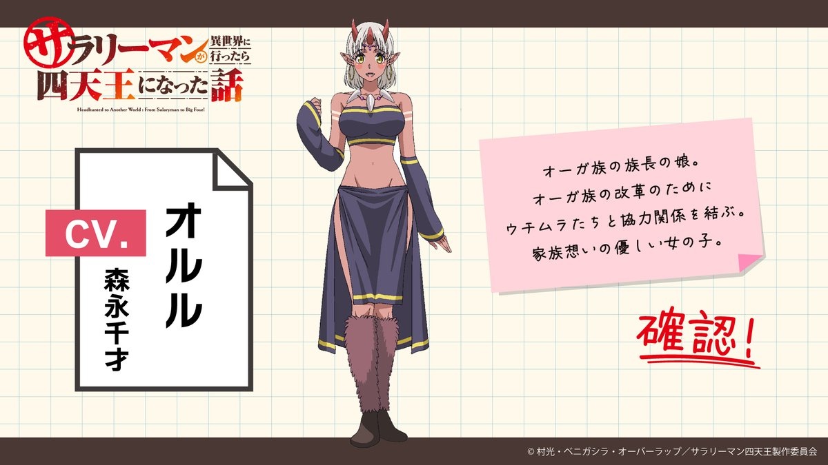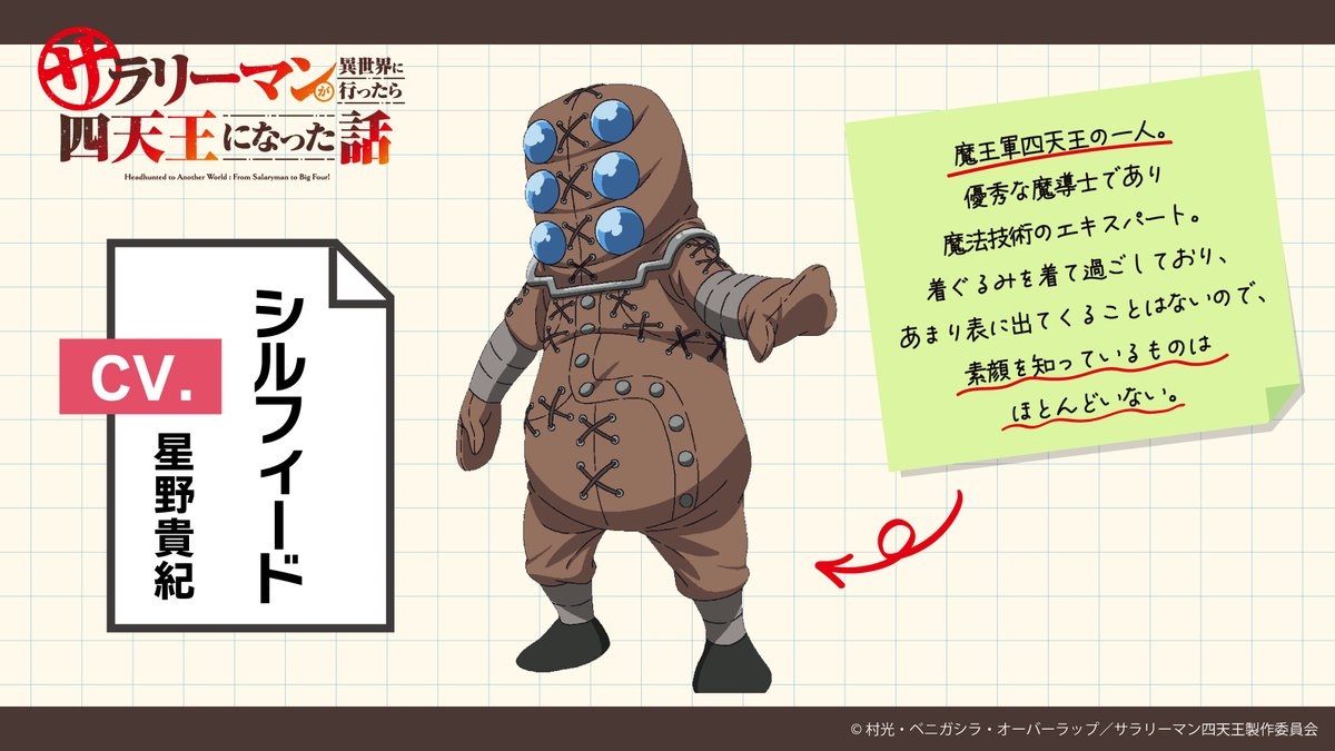 追加聲優陣容部分,四天王之一,擅長魔法技術的魔導士希爾菲德由星野貴紀飾演,同樣身為四天王,率領亞人部隊的首領蓋諾姆由稗田寧寧飾演,巨魔族族長女兒歐露露由森永千才飾演,向內村求助的神秘少女涅雅由津久井彩文飾演。