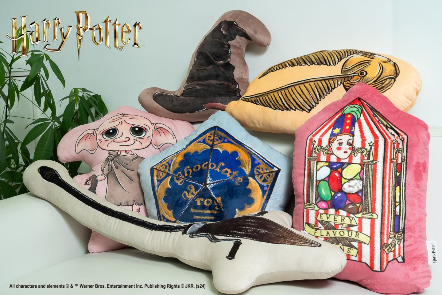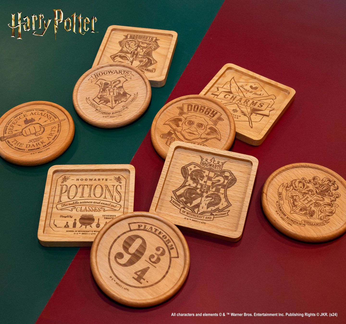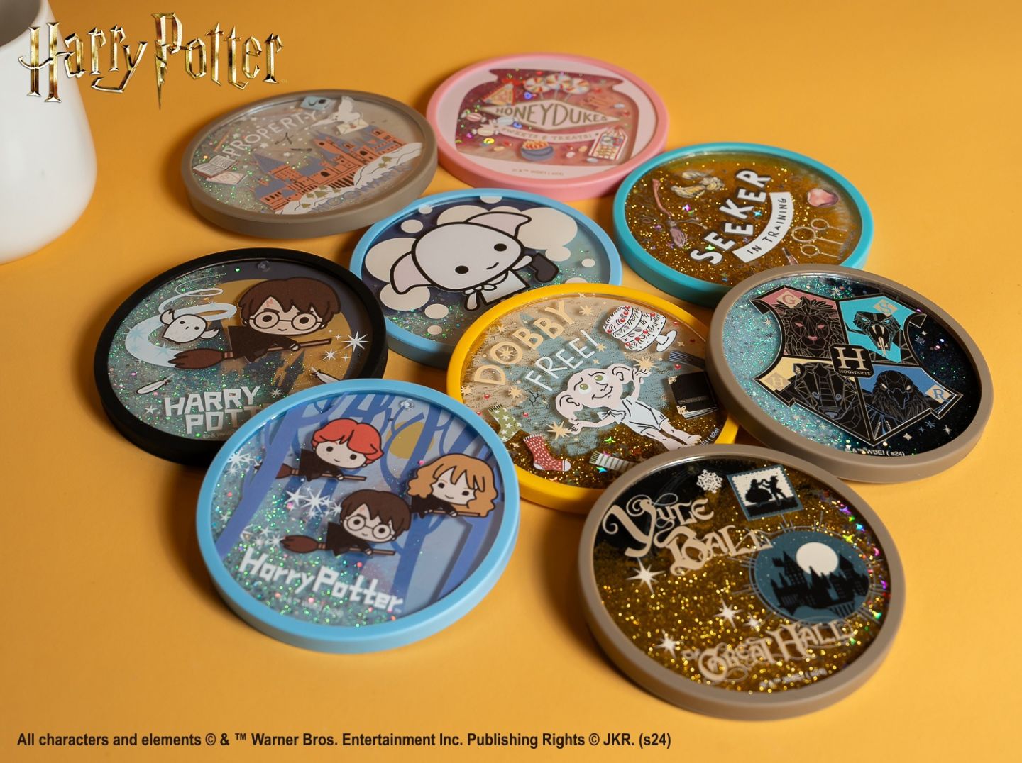 「洗衣籃」沒有魔法,但多比會提醒你將髒衣服好好放進去!五款「毛毯」、六款「抱枕」陪你迎接微涼秋天;「陶瓷杯墊」以四學院代表動物為設計推出八款,文青風格的「木杯墊」也是八款,九款「流沙杯墊」帶來亮晶晶的魔法施放感受,營造不同桌面色彩!