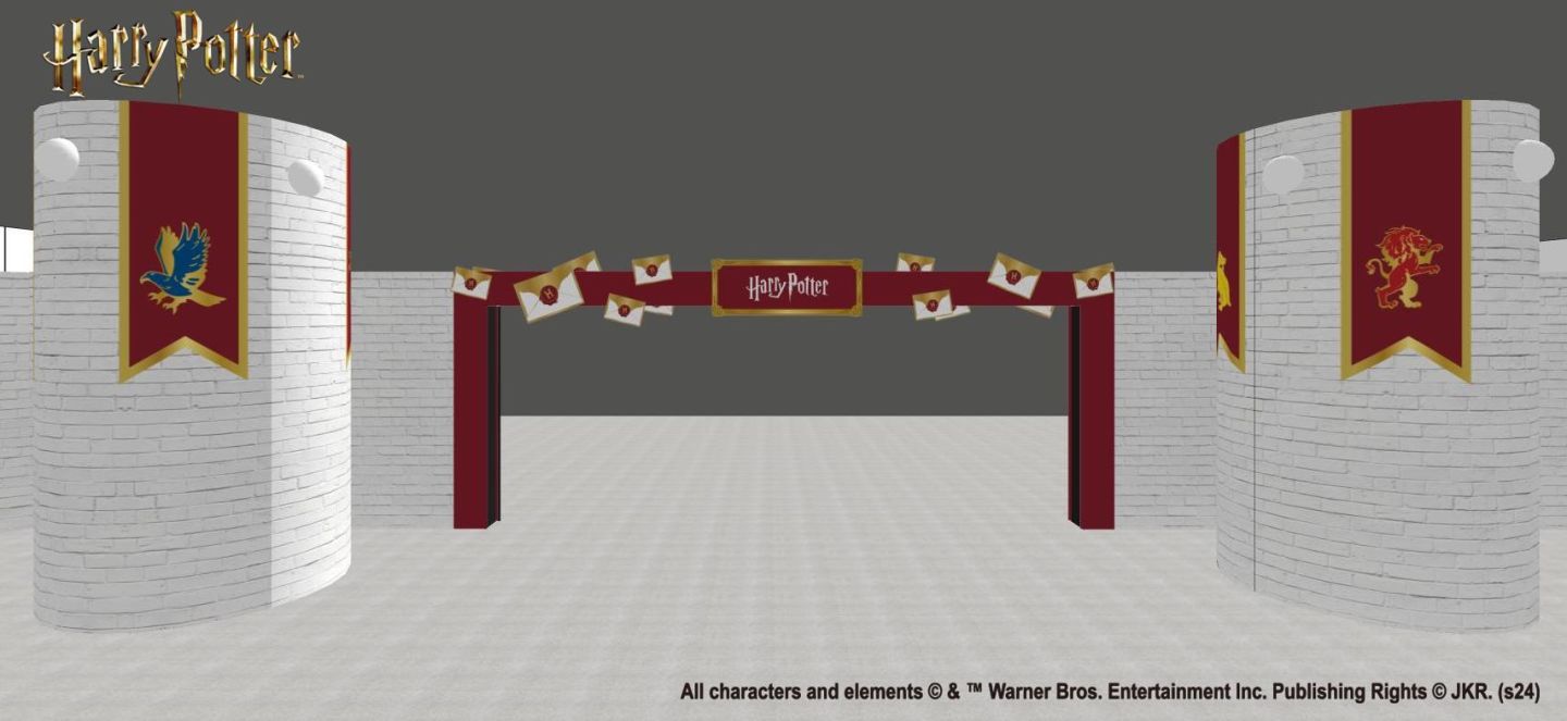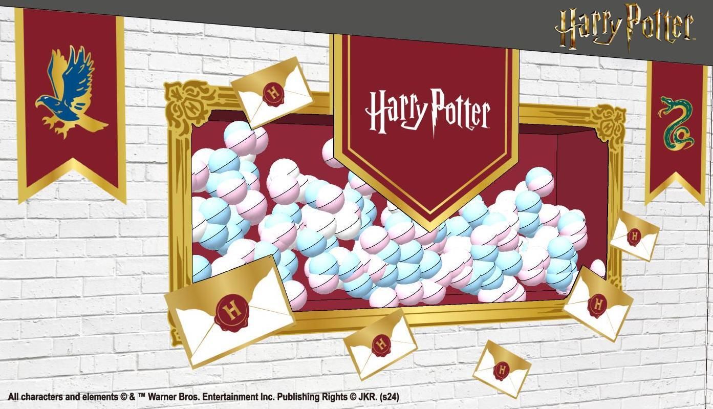 在遠處看到外牆上的「霍格華茲經典元素」就知道你沒有迷路!「窗台區」可一窺快閃店內景象;走入店內,柱子上掛著霍格華茲四學院「學院旗區」,接著還有「霍格華茲城堡」;最後別忘了來到「入學通知信」大扭蛋區,四處紛飛的通知信,裡面哪一封會是你的入學通知呢?