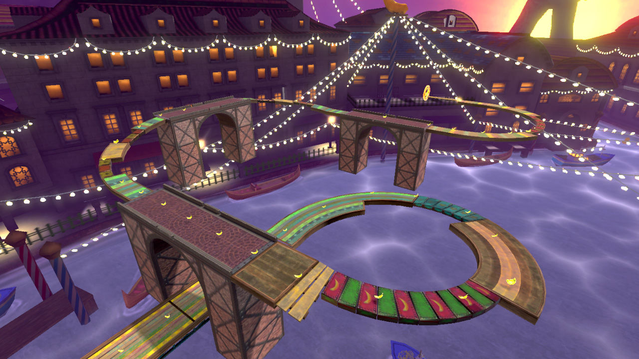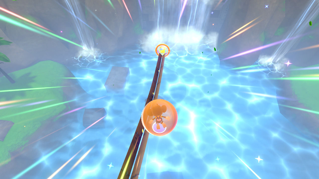 此關卡有蜿蜒的細長軌道。善用新動作「旋轉衝刺」就能飛越軌道,爽快地大幅縮短路程。