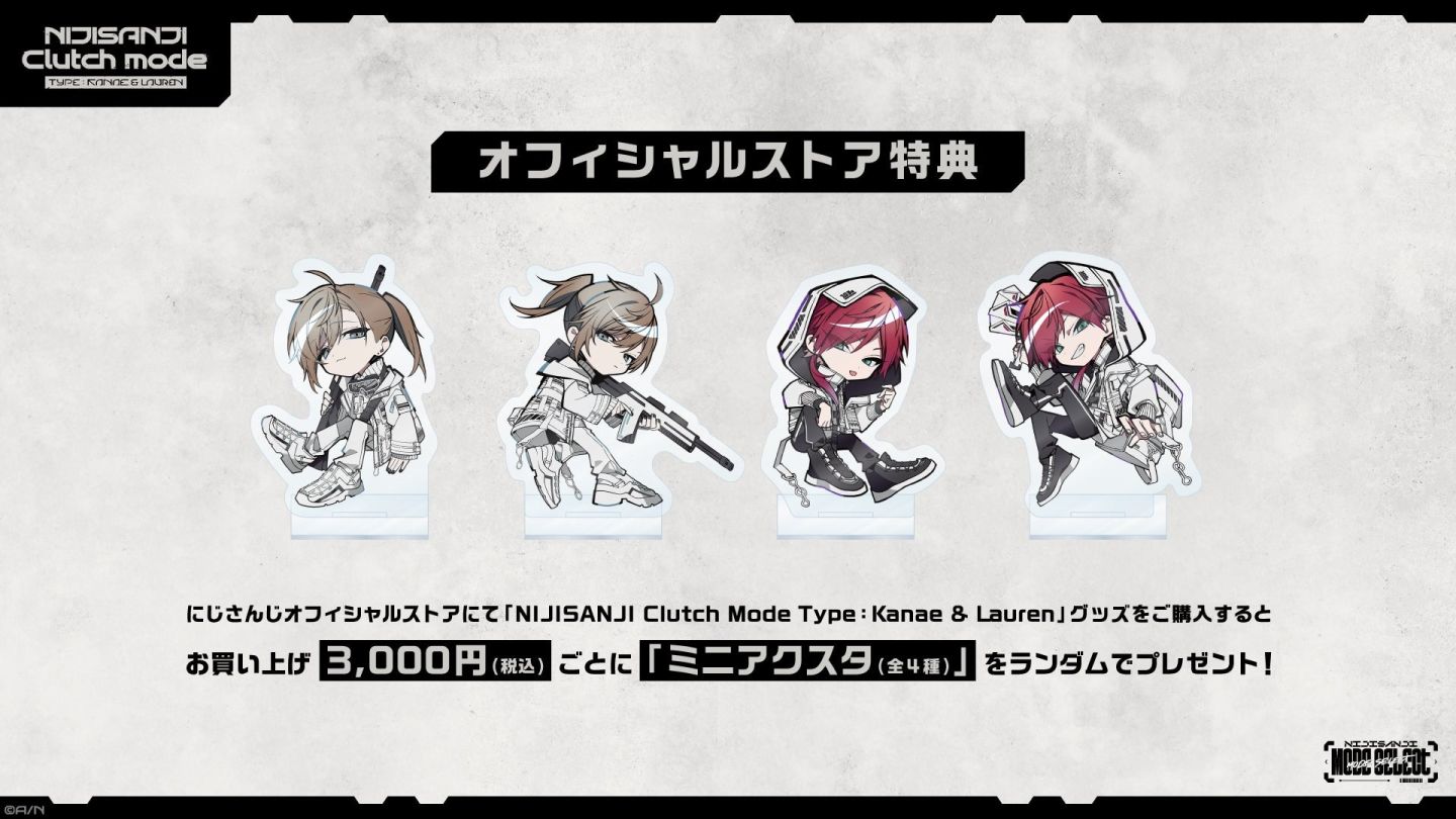 ANYCOLOR 於今(11)日宣布,旗下虛擬偶像事務所彩虹社開設全新周邊主題「NIJISANJI Mode Select」網站,並將從 11 月 13 日起於彩虹社官方商店發售「NIJISANJI Clutch Mode Type:Kanae & Lauren」系列周邊。