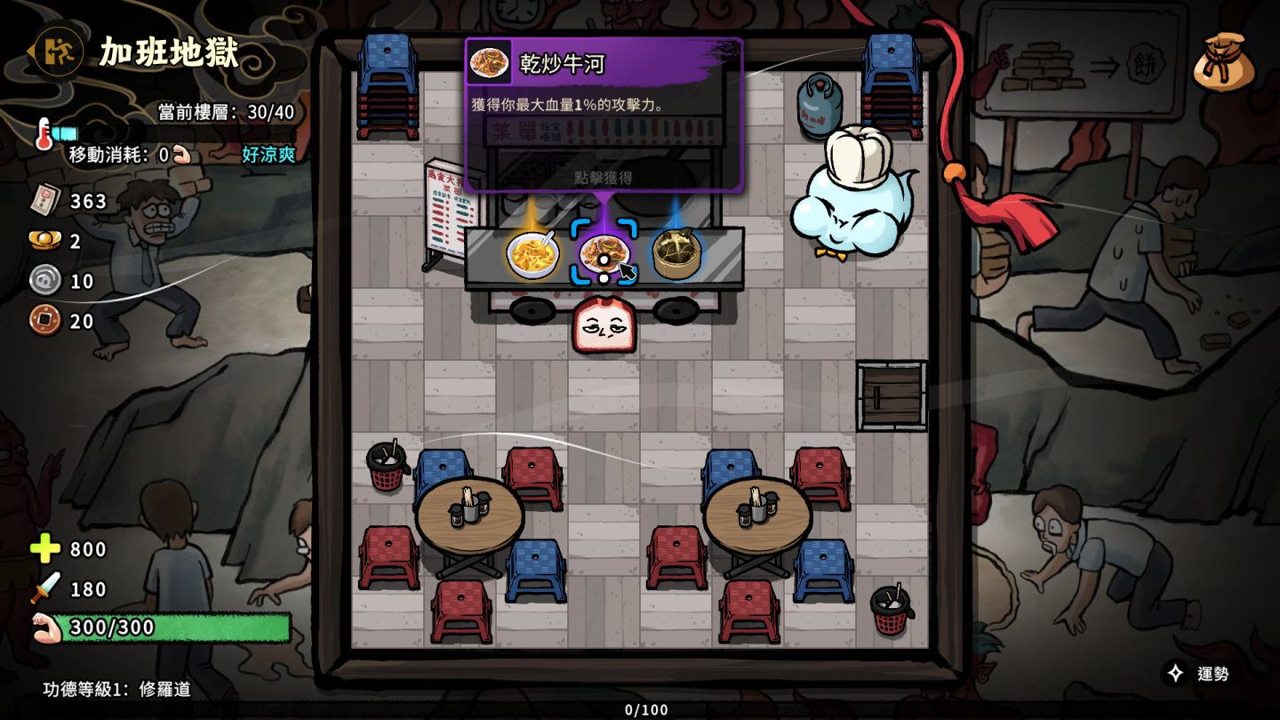 .肉鴿 Roguelike 和養成元素:透過大排檔食物,變身,陵園建築,色香味天賦等系統獲得上百種不同的能力,成為最強叉燒!