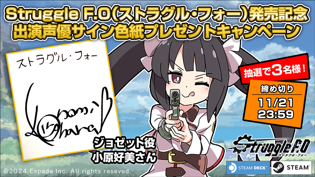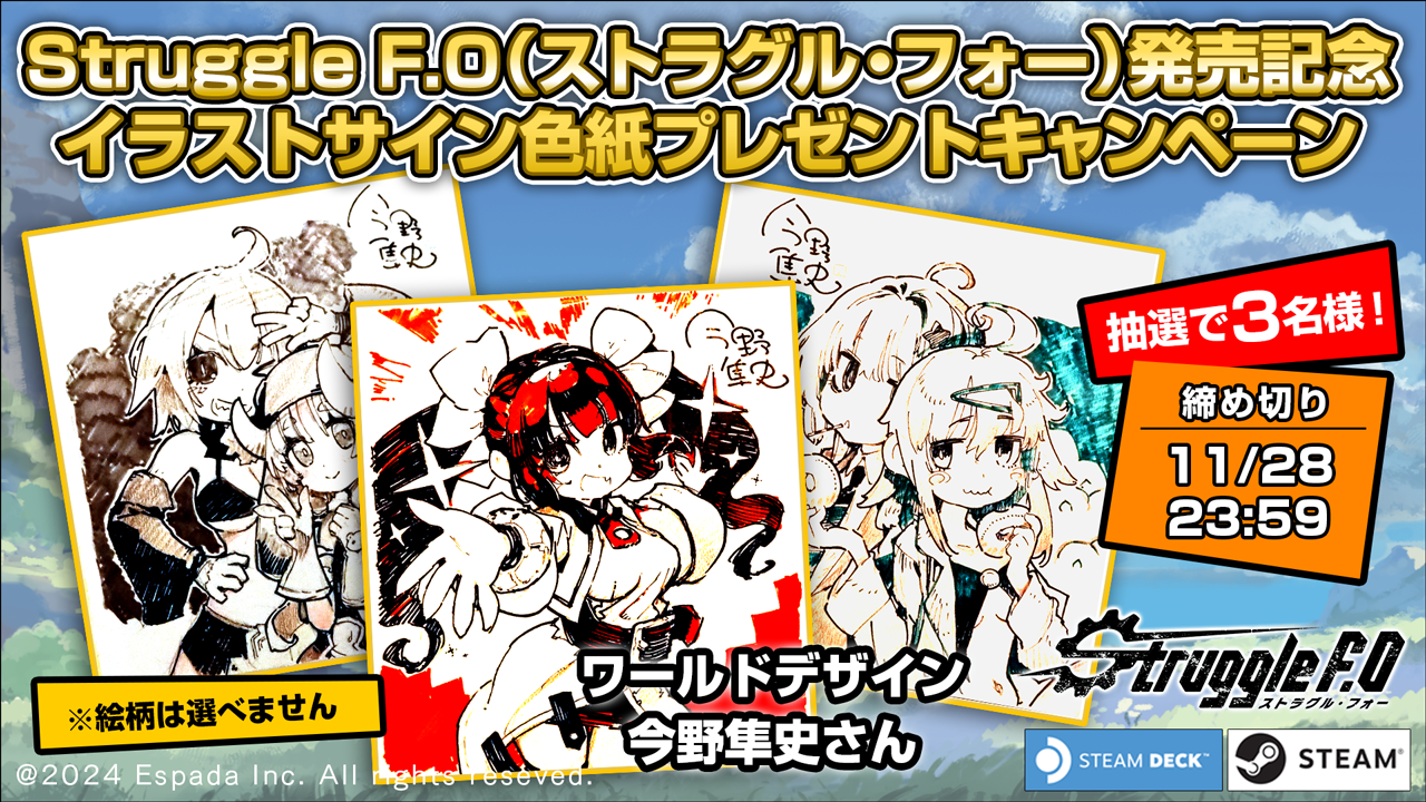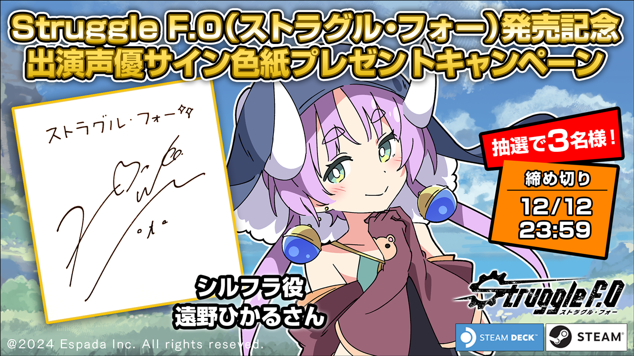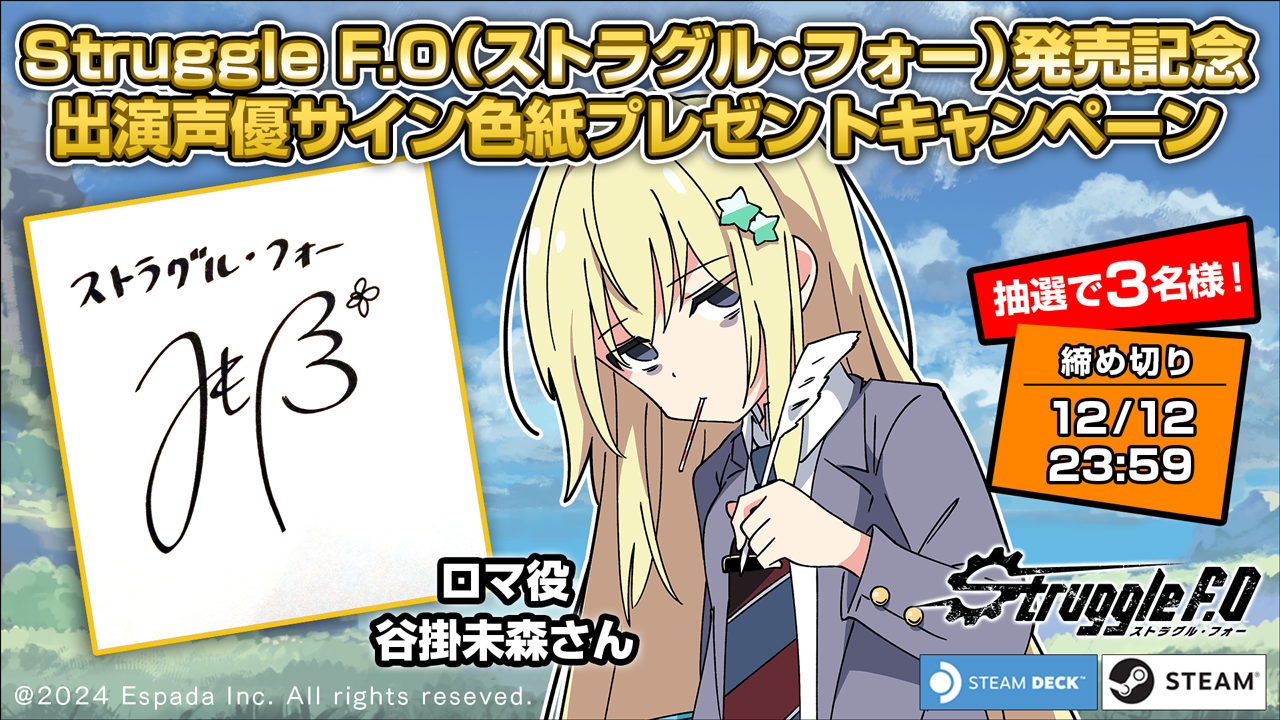 為紀念遊戲發售,《紛爭落幕 Struggle F.O》官方X將舉辦聲優與創作者簽名板贈送活動。機會難得,不要錯過喔。