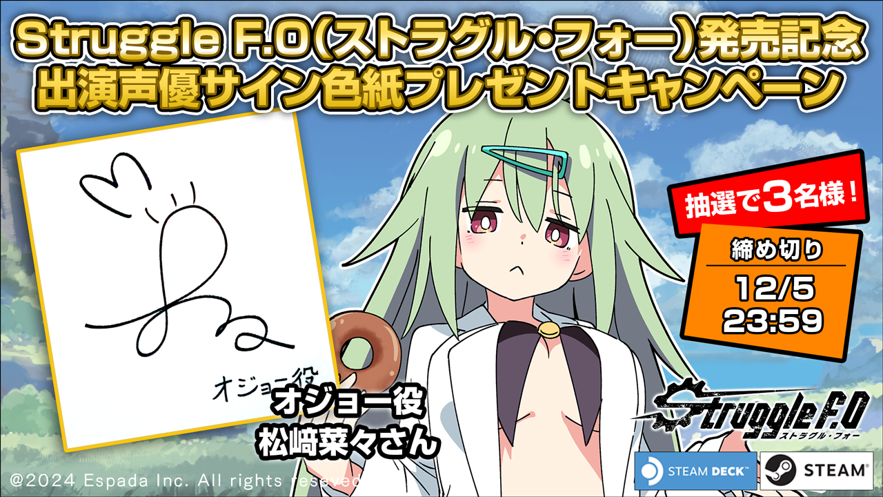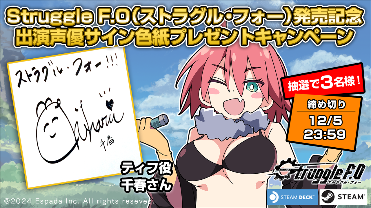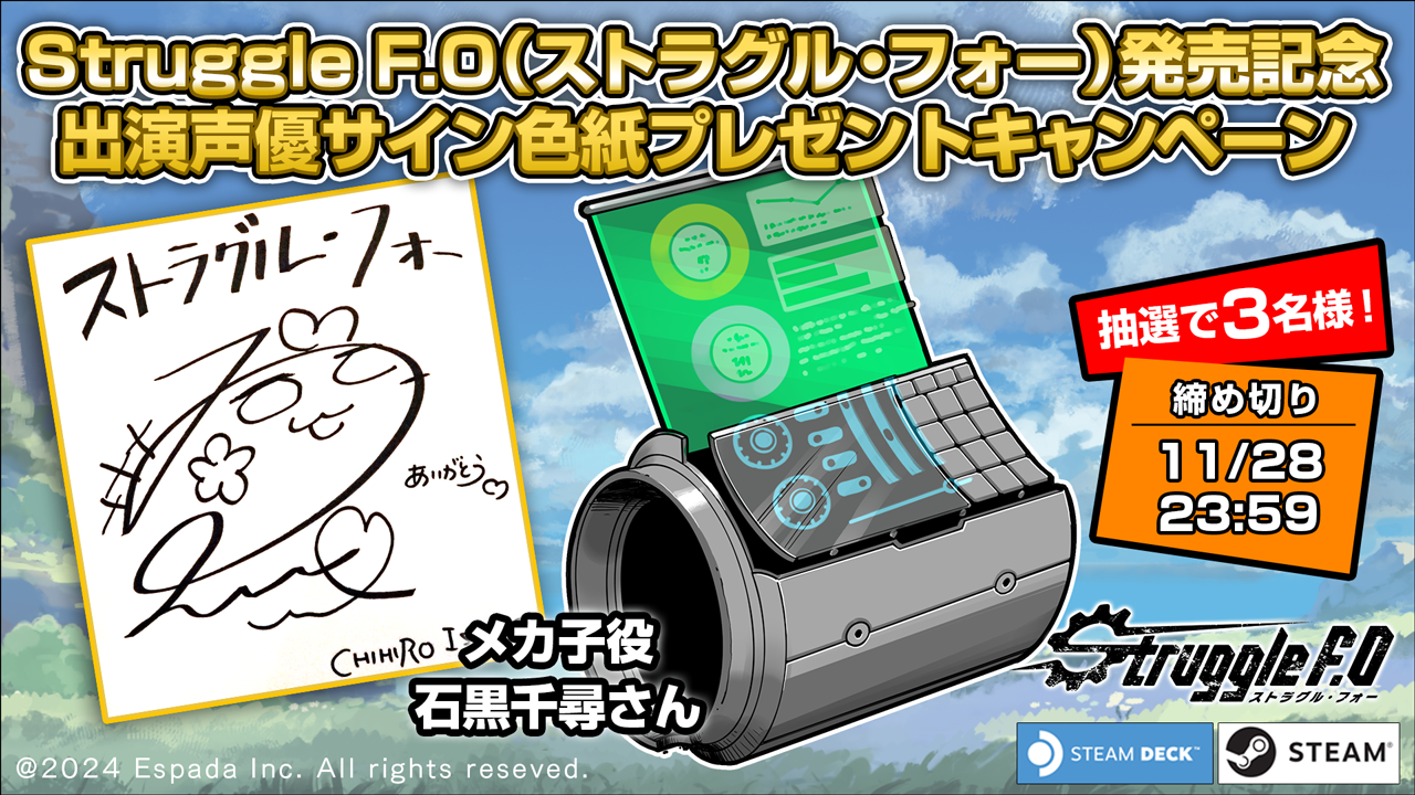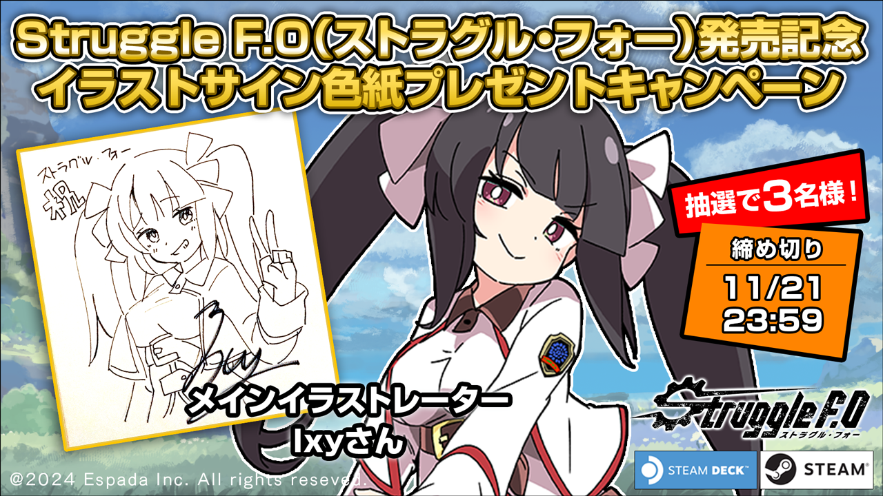 為紀念遊戲發售,《紛爭落幕 Struggle F.O》官方X將舉辦聲優與創作者簽名板贈送活動。機會難得,不要錯過喔。