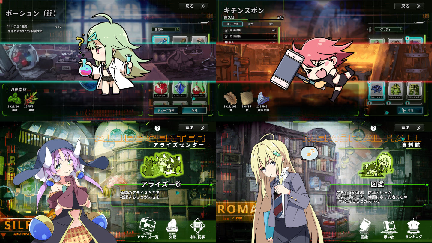 玩家可利用獲得的資源製作道具、武器與防具,並通過提供水源和食物逐步壯大村落。收集素材與資訊,讓村落更加繁榮吧。