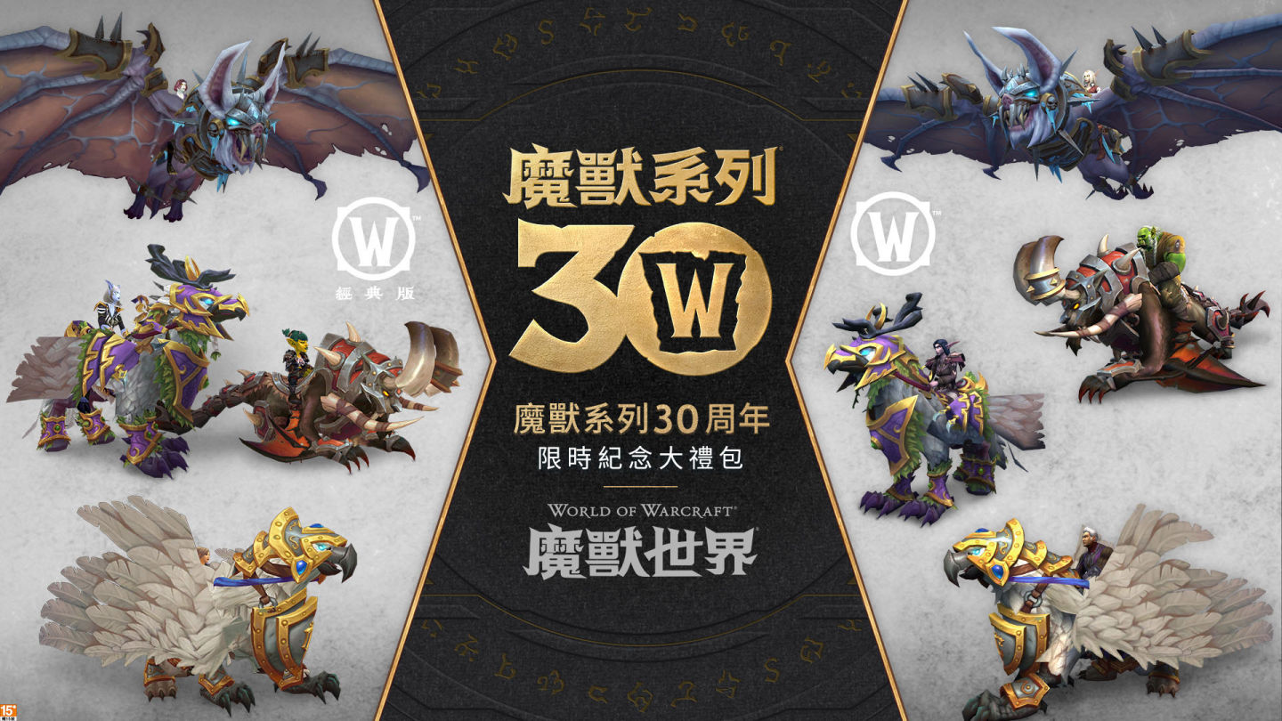 為歡慶魔獸系列30週年,官方推出期間限定的「魔獸30週年慶坐騎組合包」,售價台幣900元/港幣236元,販售至2025年1月7日止。組合包內包含象徵聯盟英勇的「獅鷲獸」與展現部落原始之力的「蠍尾獅」坐騎,適用於《魔獸世界》與經典版遊戲內使用,完美致敬《魔獸爭霸》的輝煌歷史。