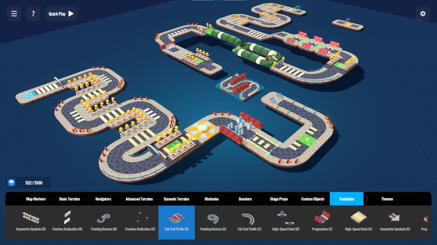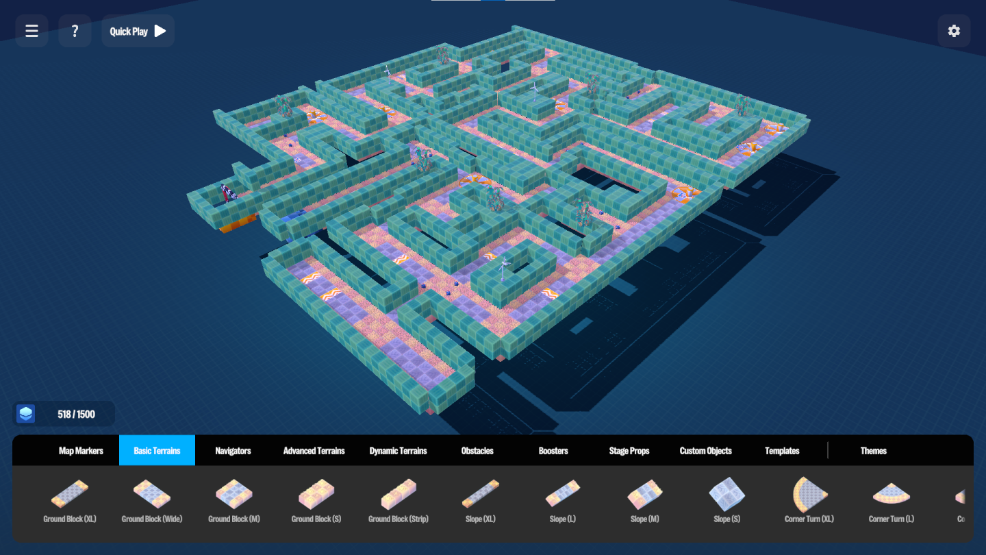進階地形與動態地形功能為遊戲地圖帶來多層次的變化與挑戰,玩家可以利用多樣的干擾物件,例如地鼠槌子和旋轉針刺,為對手製造障礙,增加競賽難度。同時,輔助物件如加速板和彈跳板則能讓玩家的操作更加流暢,提升競速的樂趣。豐富的裝飾物件與物件模板進一步簡化了地圖設計過程,讓玩家能快速創造出獨具風格的關卡,充分體驗創造與挑戰的樂趣。