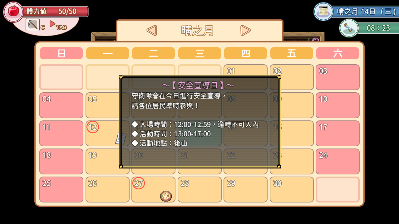 .體力及時間系統:許多活動是需要消耗體力或時間的,好好分配吧!
