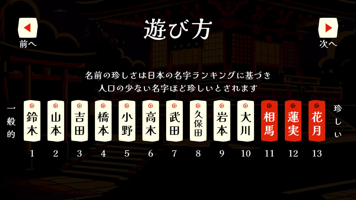 玩家可使用「改名卡」為幽靈改名,姓氏的稀有度是根據日本姓氏實際排名而定,重點是要能判斷出幽靈與改名卡上的姓氏哪個更為稀有;改名卡同時也代表著玩家的生命,如果誤判名字稀有度的話就會被憤怒的幽靈攻擊,導致驅魔失敗,且會失去改名卡而結束遊戲。
